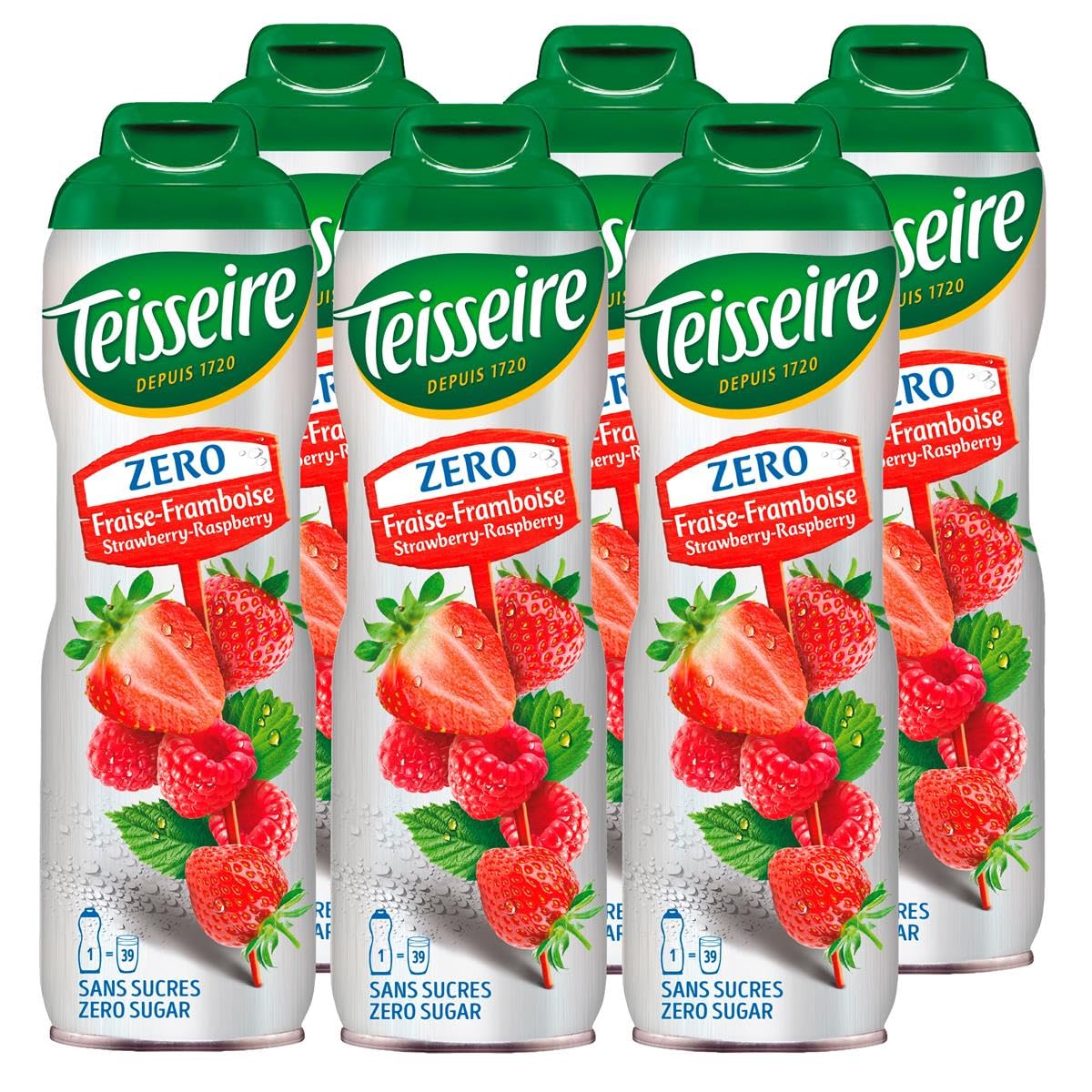 Teisseire Fraise framboise (Fraise - Framboise) Zero - Sans sucre pour boissons rafraîchissantes - 6 x 600 ml