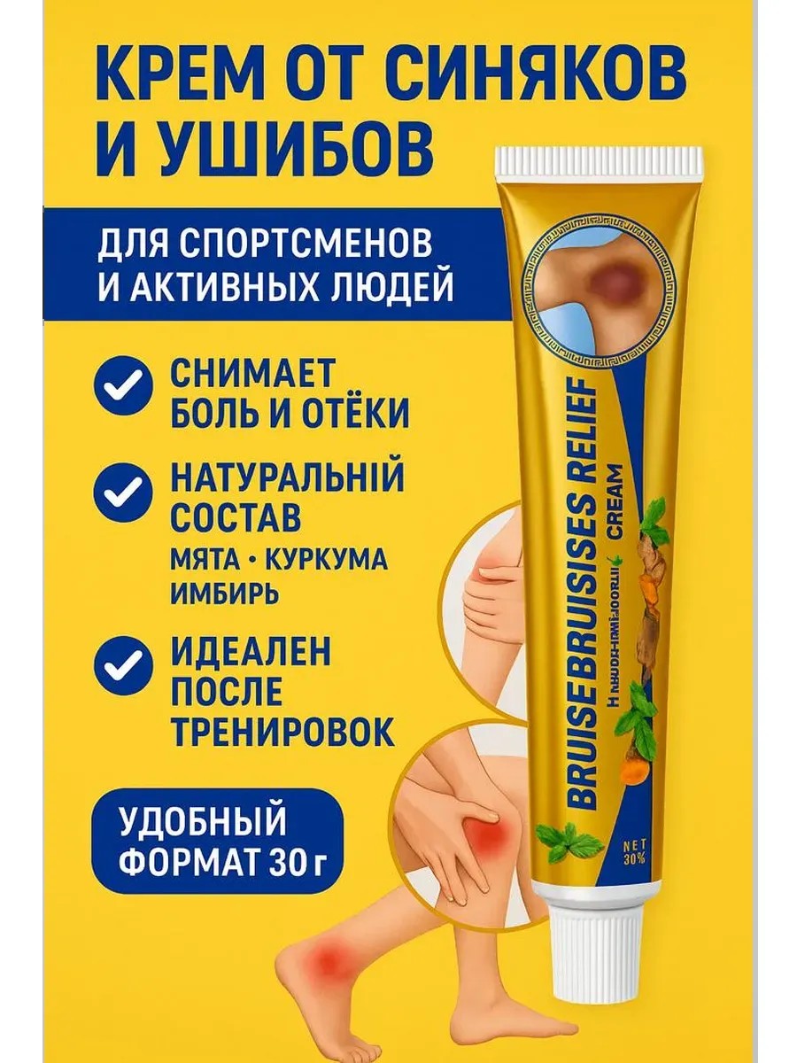 Эффективная мазь от синяков и ушибов предназначена для быстрого снятия боли, уменьшения отёков и рассасывания гематом. Идеально подходит как крем от синяков, мазь от ушибов и гель от ушибов после травм, падений или ударов. Благодаря активным компонентам облегчает состояние при растяжениях, ушибах мягких тканей, боли в мышцах, суставах и связках. Мазь от боли в мышцах и мазь от отёков ускоряет восстановление тканей, устраняет воспаление. Подходит взрослым и детям как мазь при ушибе ноги, мазь при травмах суставов, синяках под глазами, гематомах после уколов. Используется спортсменами и пожилыми людьми как мазь от гематом и боли, мазь при растяжении связок. Натуральный состав, удобен для ежедневного применения. Отличное решение для домашней аптечки. Быстро впитывается, не оставляет следов. Лучшая мазь при ушибах и растяжениях!