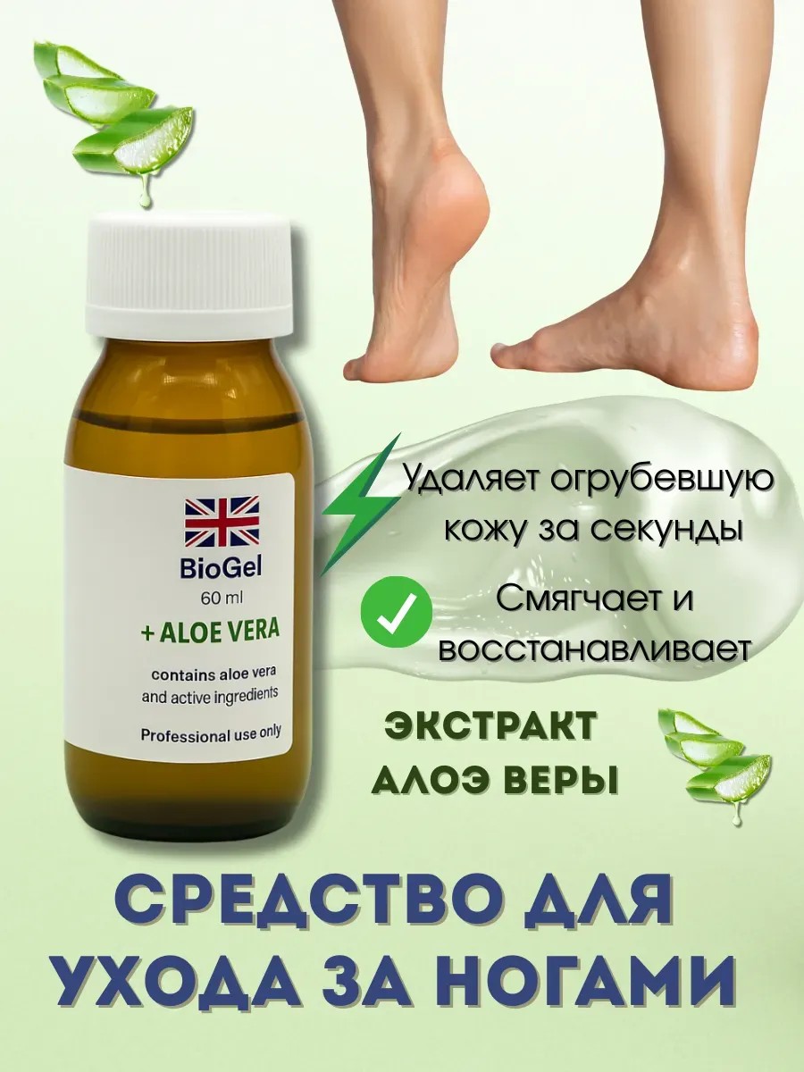 BioGel with aloe vera offers a safer and more modern solution: active ingredients penetrate the skin, soften rough areas, and allow you to easily remove them without damaging healthy tissue.