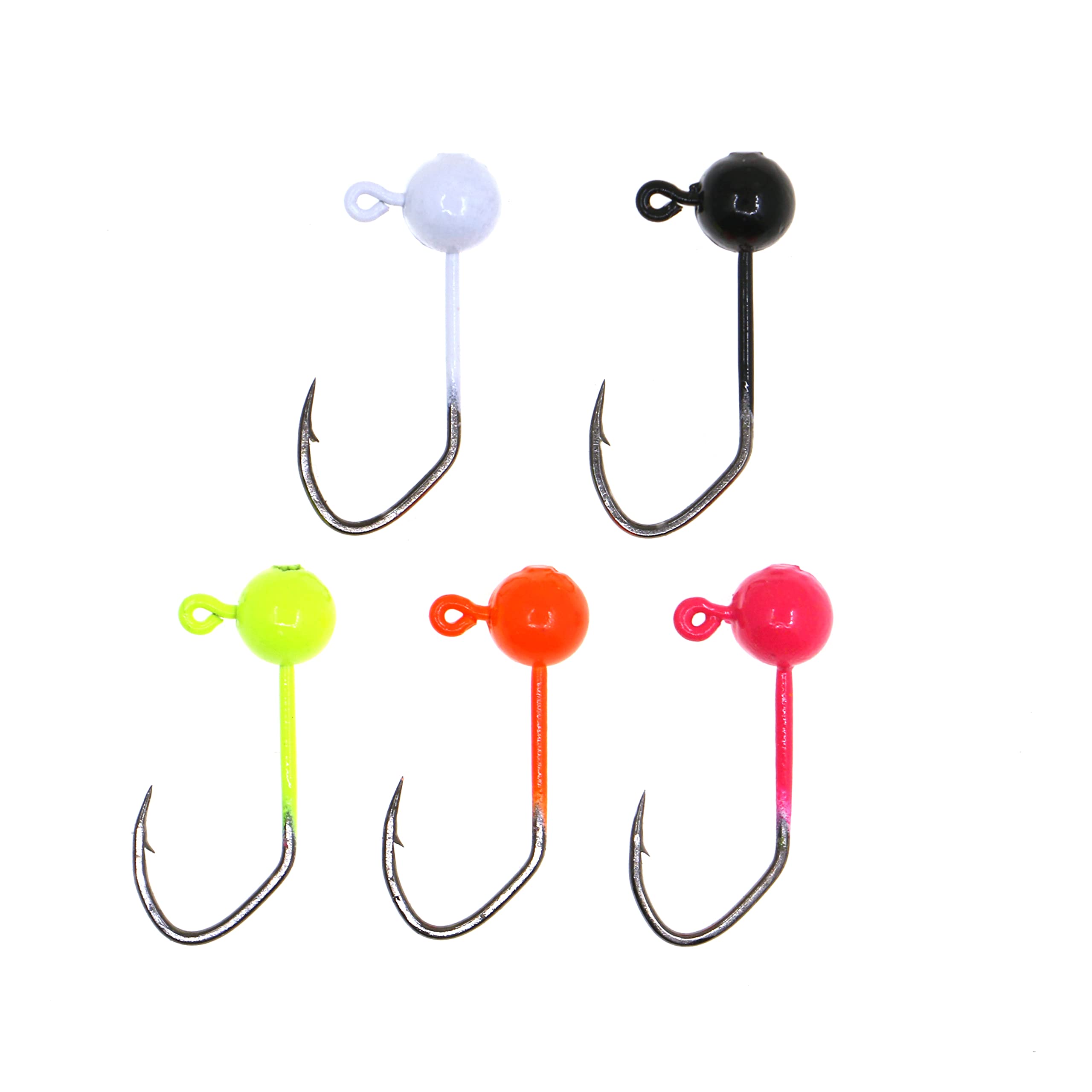 Small and extra-small jig heads for fly tying patterns.Per 50. Sizes:(1/124oz - #10 hook);(1/80oz - #8 hook);(1/64oz - #8;hook);(1/32oz - #6 hook);(1/16oz - #4 hook)(1/8oz - #2 hook). Unique up-bend for maximum holding power. Crappies stay hooked and can't easily spit jigs out. Round head style.(Not flat head style). Super-sharp Temorah Sickle hooks.