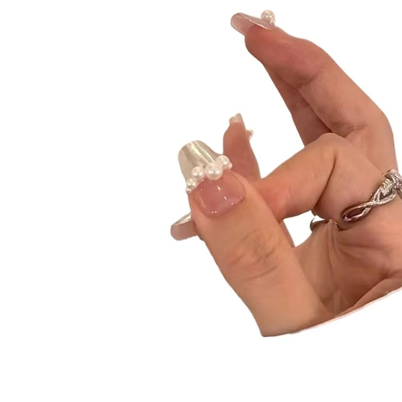 Temperament Manicure Pink Pearl French Manicure handmade short T-wearing nail patch wearable whitening and detachable(M)