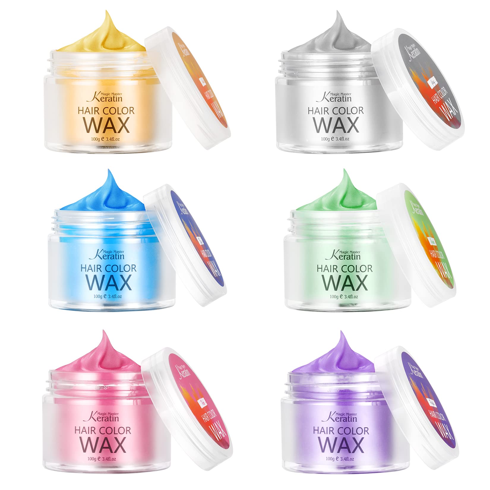 This hair dye is a instant hair wax that allows you to change the color and styling of your hair in a few minutes. It is a safe and fun way to give your hair temporary color, while providing some styling hold. It is also very easy to wash out after use. Perfect for Festivals, Parties, Events, Clubbing, Raves, Halloween, Fancy dress and Daily use. Magic Master Keratin hair color wax is made from all natural ingredients, no scalp irritation, no harm to your health, so you don't need to worry about changing the color will damage your hair. Just enjoy the new hairstyle that designed by yourself! Product Features: 1.Instant Styling Coloring 2.Easy to Dye and Wash Out 3.Long Lasting No Stickiness 4.100 Natural Ingredients, Safe for Hair Skin 5.Ideal for Halloween, Cosplay, Party, Christmas, Date, Clubbing or Daily use 6.Five Fashionable Colors for You to Choose: Golden, Gray, Blue, Pink, Purple How To Use: 1.Clean your hair and dry it up to 80 . 2.Take the right amount hair wax evenly rub on your palm to the finger, apply to your hair which needs coloring. 3.Repeat several times until the hair has been dyed, then according to their own requirements styling your hair. 4.Dry your hair with hot air from a hair dryer, charming hairstyle done! 5.Washes out easily with just warm water. Cautions: ✓1.Avoid direct contact with eyes. ✓2.For external use only. ✓3.If you are afraid of getting your hands dirty during use, you can use disposable gloves or brush tools. ✓4.This is a temporary coloring product, we suggest you dry your hair with hot air after it's color and styling to avoid the color accidentally getting on your face, hands or clothes. ✓5. This hair color wax with styling function, so the hair will harden after color.(The degree of hardening of hair depends on the type of hair)✓Note: It is recommended to use gloves during hair dyeing and avoid direct contact with skin, especially eyes. If there is any undetected allergic reaction or discomfort during use, please stop using it immediately and consult a doctor. ✓Simple Usage: You can easily diy the desired hair color at home instead of going to the hair salon. It is recommended to wash your hair before use, then blow-dry it to 80 , and then apply the hair dye, starting from the roots Start at the 3-4 cm position and comb down until the ends of the hair. Repeatedly rub the cream evenly, and finally apply it to the roots, and then blow dry the hair. It can be easily washed off with warm water. ✓Vibrant Colors: Magic Master Keratin Hair Modelling Wax provides 5 basic colors, you can also mix colors to diy your own new color styles! You can choose hair style and coloring according to your mood or occasion at any time. You can change different hair colors according to different occasions to make your personal image come more alive and let others impress you. ✓Easy Coloring Easy Washing: For products that want to change hair color without damaging the hair, this Instant Hair Dye Wax is a very good choice, it is easy to wash off and color, and is not sticky! It is refreshing and easy to dry. You can buy hair dyes in multiple colors, and you can change the color you want at any time by just washing it. ✓Harmless to Hair: Our Temporary Hair Colour Wax is made without harmful chemicals to ensure strong holding power while keeping your hair completely and at the same time can completely keep the hair shiny. No scalp irritation, gentle and non-damaging to your hair, and the effect is long-lasting.