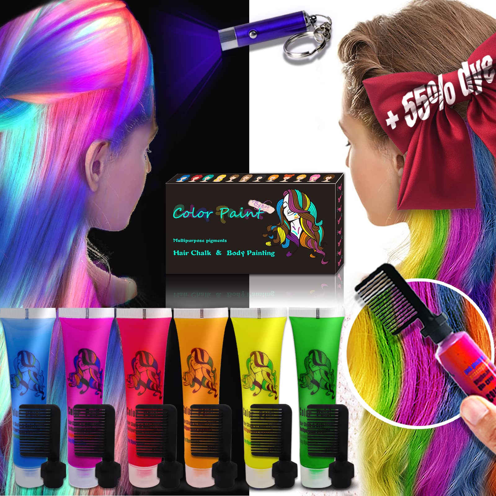 Temporary Hair Dye, Hair Dye Glow in the Dark Paint Can Dye More 55% Hair Than Hair Chalk on Christmas, Birthday and Music Festival Party Supplies, Gifts for Girls and Boys