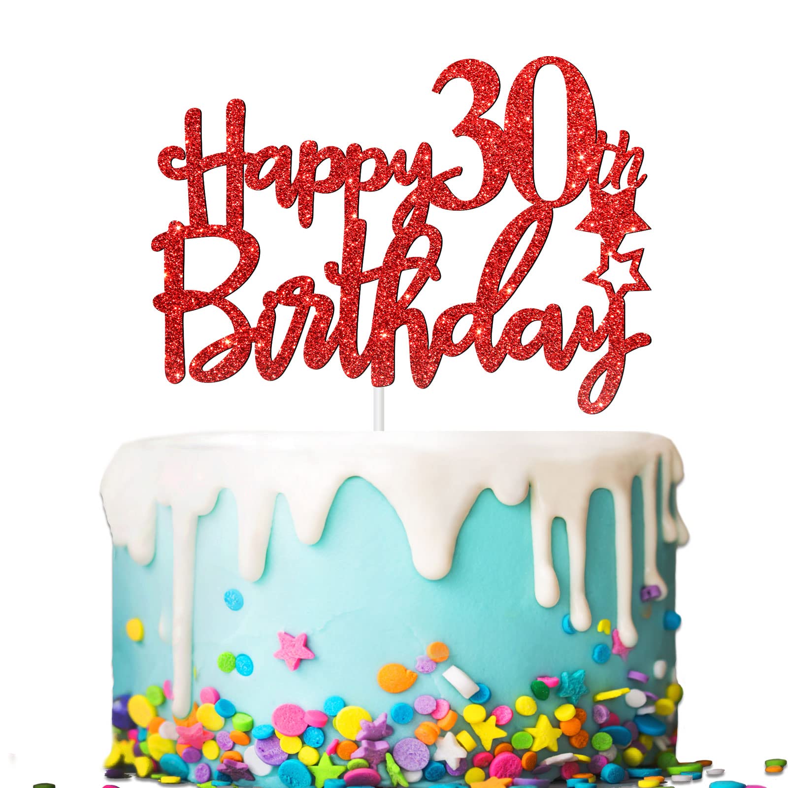 Tenhaisi Gilttery Red Happy 30th Birthday Cake Topper Cheers to 30 Birthday Party Decoration Adults Party Decoration