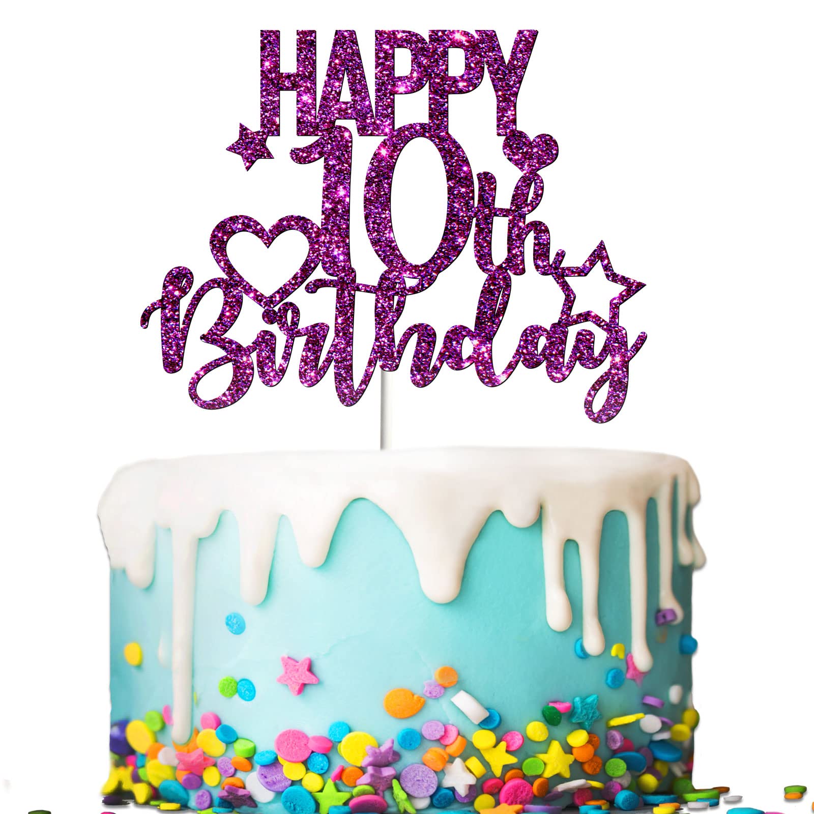 Tenhaisi Glitter Purple Happy 10th Birthday Cake Topper 10 and Fabulous Cake Topper - 10th Happy Birthday Party Decoration - Hello 10-10 Years Birthday/Wedding Anniversary Party Supplies