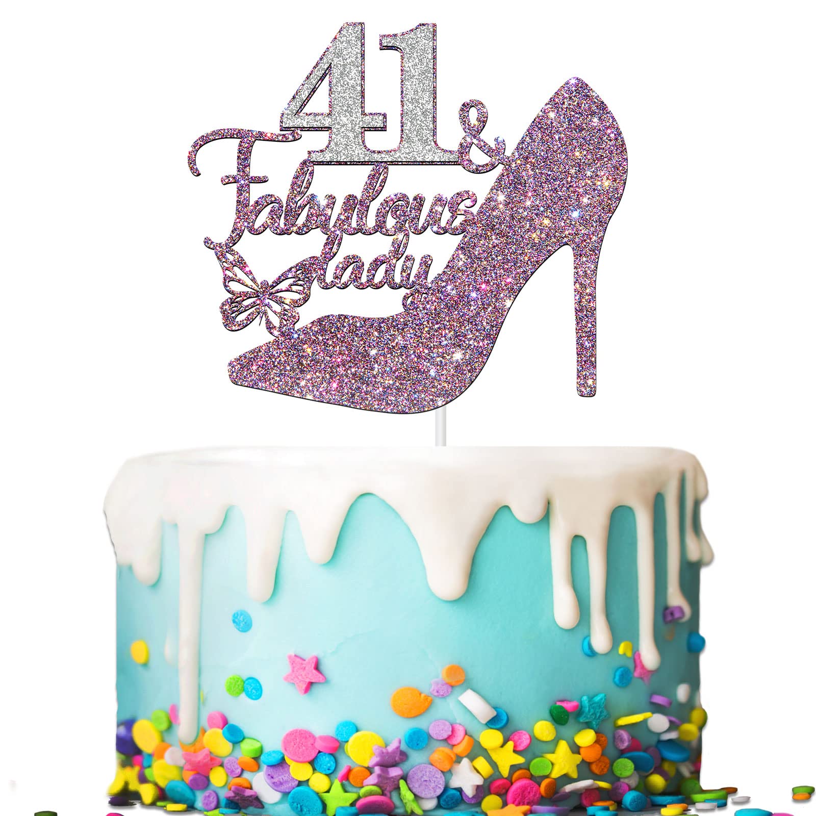 Tenhaisi Purple Sliver Glitter 41 & Fabulous Lady Cake Topper Happy 41st Birthday Party Decoration Cheers to 41 Years 41 & Fabulous Birthday Wedding Celebration/Anniversary Party Supplies