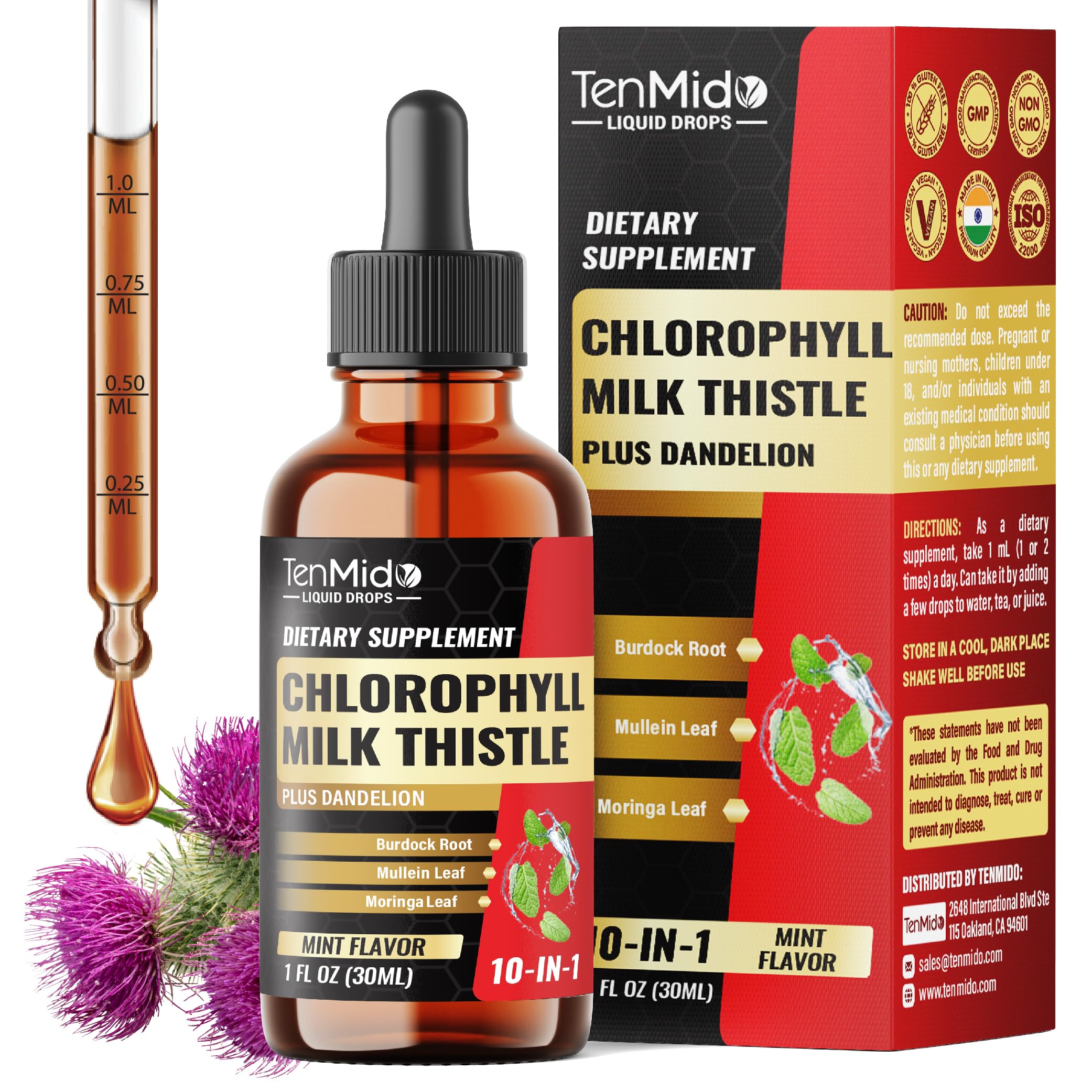 Clean, Safe Premium Quality – Our Chlorophyll complex liquid is manufactured in a GMP-certified facility, undergo rigorous third-party testing testing to ensure purity and safety, this liquid chlorophyll vegan formula is alcohol-free, non-GMO and gluten-free supplement contains no artificial fillers, preservatives, or unnecessary additives. We always make your health a priority, start your journey towards well-being today!. Fast-Absorbing Liquid Drops – No Capsules Needed: Unlike capsules, our liquid chlorophyll drops format supports better bioavailability and absorption compared to capsules. Alcohol-free, vegan-friendly, and easy on digestion. Take1ml per day. Each 30ml bottle of chlorophyll drops provides a full 30-day supply to fit seamlessly into your daily routine. Gentle Digestive Support: Our liquid chlorophyll supplements are enriched with Moringa Leaf, Aloe Vera, Peppermint and Ginger, these vegan chlorophyll liquid drops are designed to support gentle digestive support and internal balance. Support Wellness: Each serving delivers 1000mg of Chlorophyll plus Milk Thistle, Dandelion, Burdock Root, Moringa and Neem, a synergy of traditional botanicals known to help support internal balance and promote a healthy lifestyle. 12-in-1 Advanced Formula: Our Chlorophyll liquid drops deliver a harmonious combination of 12 potent botanicals including Chlorophyll, Milk Thistle, Dandelion, Burdock Root, Mullein Leaf, Moringa Oleifera, Neem, Aloe Vera, Peppermint and Ginger. This liquid chlorophyll supplement is carefully crafted to support overall wellness in one convenient formula.