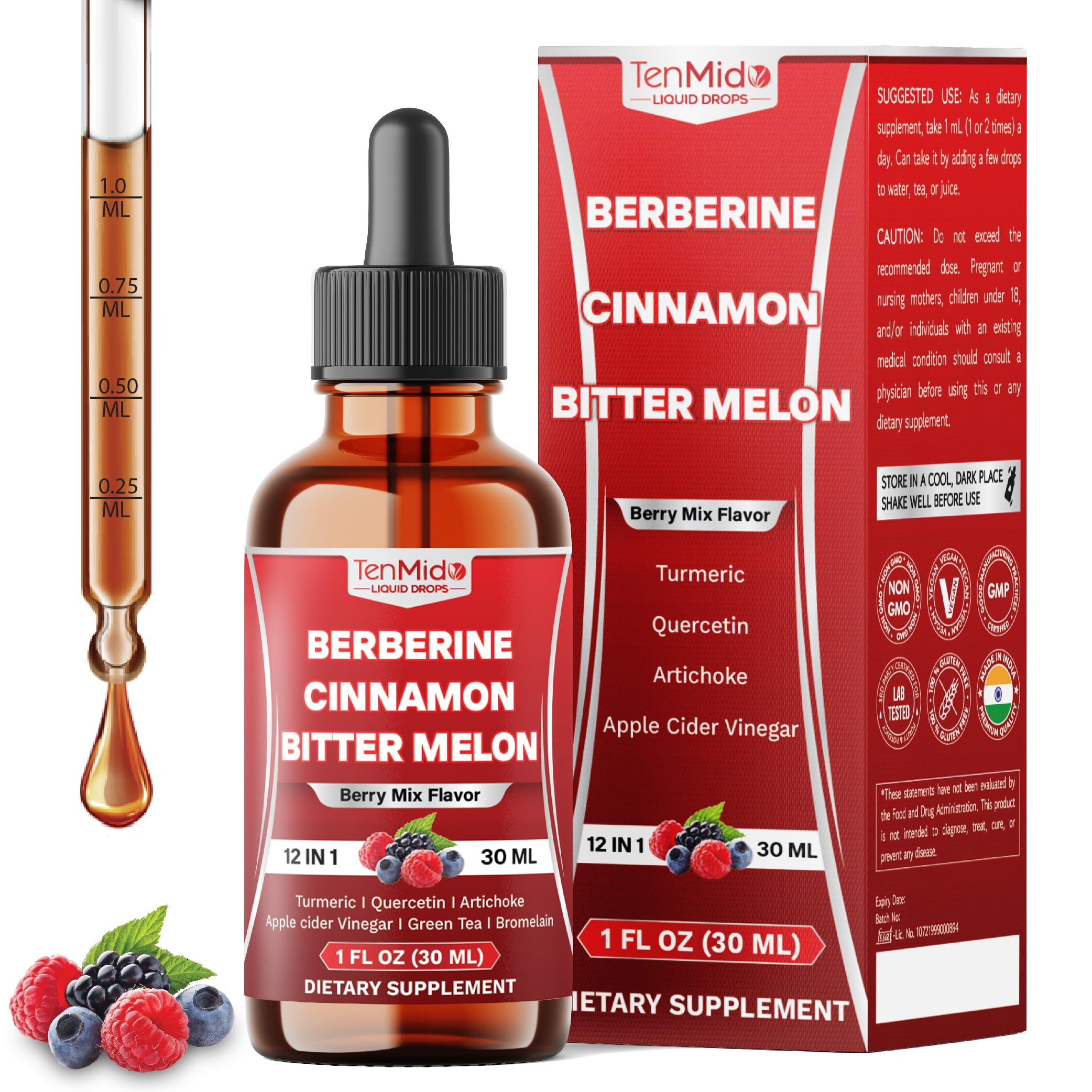 Clean, Safe Premium Quality – Our berberine supplements are manufactured in a GMP-certified facility, undergo rigorous third-party testing testing to ensure purity and safety, this berberine supplement liquid are alcohol-free, non-GMO, vegan, and gluten-free supplement contains no artificial fillers, preservatives, or unnecessary additives. We always make your health a priority, start your journey towards well-being today!. Fast-Absorbing Liquid Drops – No Capsules Needed: Unlike capsules, our liquid berberine drops are designed for optimal absorption and bioavailability. Alcohol-free, vegan-friendly, and easy on digestion. Take 1ml daily. Each 30ml bottle of berberine root extract liquid provides a full 30-day supply to fit seamlessly into your daily routine. Support Digestive Inner Harmony: Our berberine liquid formula is enriched with Artichoke, Marshmallow Root, and Dandelion to gently support digestive comfort, gut balance, and internal harmony - making these berberine drops a ideal choice for daily support. Support Wellness: Each 1ml serving delivers 1500mg of high-quality Berberine extract, combine with Berberine with Ceylon Cinnamon Bitter Melon – traditionally used to help maintain balanced wellness and a healthy lifestyle. 12-in-1 Herbal Formula: Our Berberine supplement liquid drops - A harmonious combination of 12 herbs, including Berberine HCl (Berberis aristata), Ceylon Cinnamon, Bitter Melon, Turmeric, Quercetin, Artichoke, Apple Cider Vinegar, Green Tea, Bromelain, Marshmallow Root, Dandelion and Ginger extract, in one convenient formula, carefully crafted to help support overall wellness.
