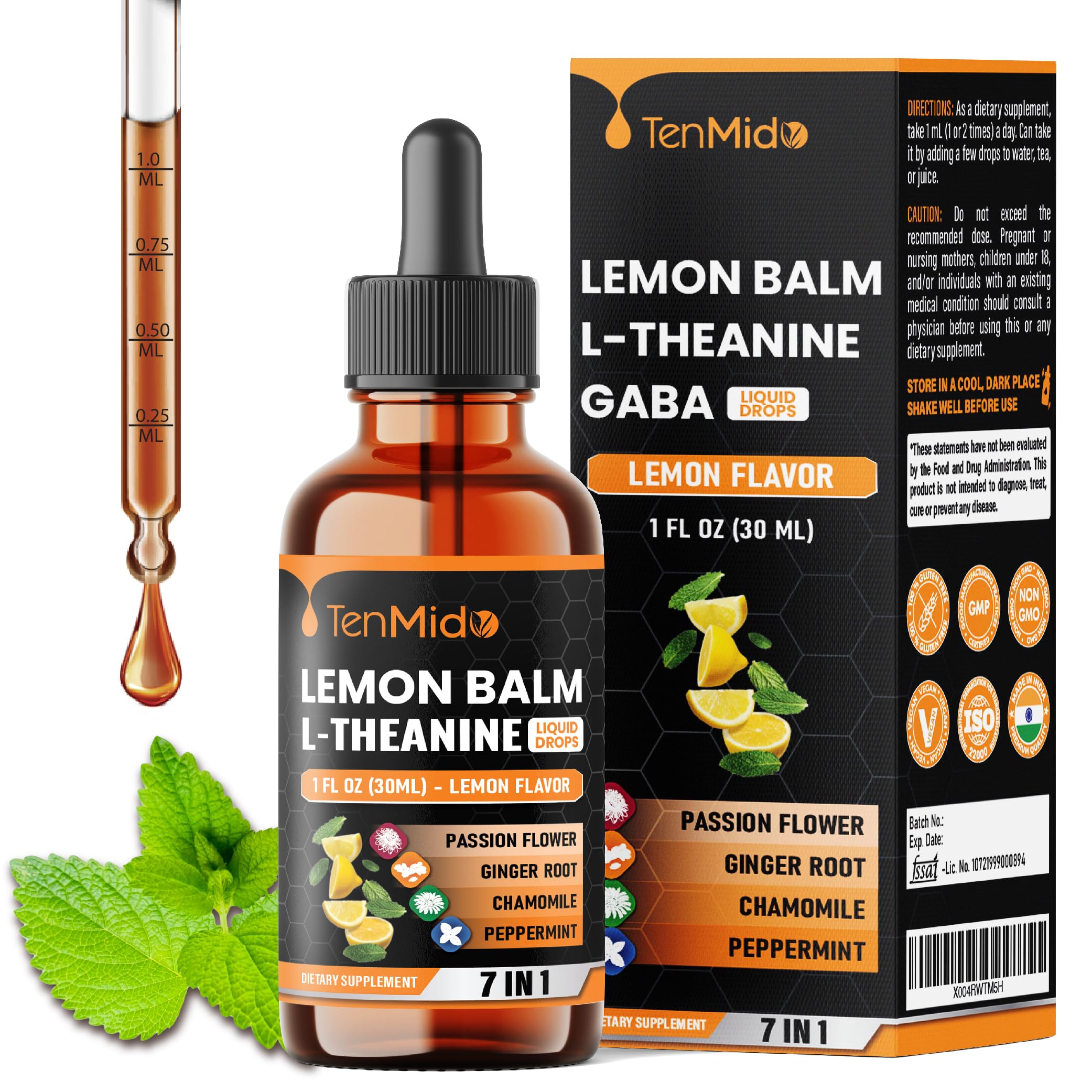 Tenmido 7in1 Lemon Balm Tincture - Herbal Extract Liquid Supplements with GABA L-Theanine Ginger Passion Flower Chamomile and Peppermint - 30ml 1 Fl OZ