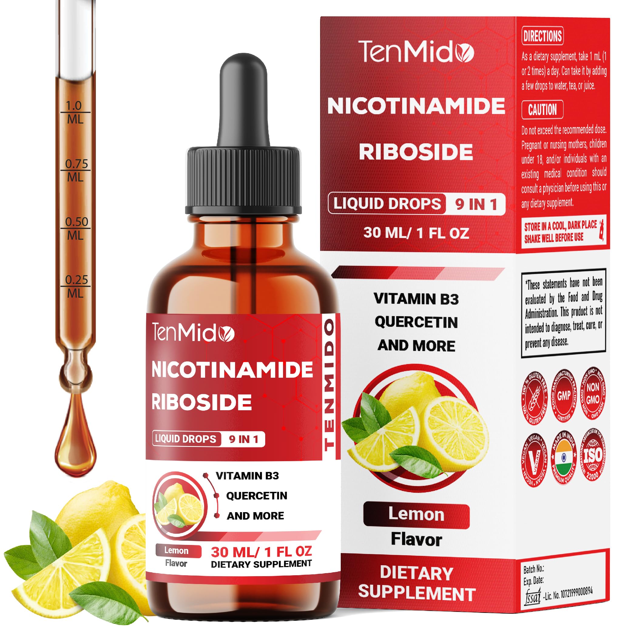 Tenmido NAD+ Supplement Liquid Drops - 9in1 with Nicotinamide Riboside Resveratrol Quercetin TMG Trimethylglycine Fisetin Co Q10 PQQ and Black Pepper - 30ml 1 Fl Oz