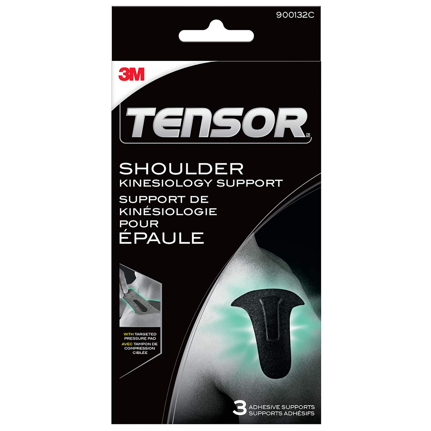 The Tensor Kinesiology Shoulder Support features a Pressure Pad that offers targeted pressure to provide support to sore or injured shoulders. Made from an innovative four-way-stretch Flexible Fiber Matrix Material, the support moves with you as you shoot, lift, swing and spike. Each support is pre-cut in the ideal shape so there's no need to hassle with scissors. The thin, low-profile design offers an athletic look, yet fits discreetly under clothing. Whether you're taking a yoga class, or playing beach volleyball, stay in the game with the support of the Tensor Kinesiology Shoulder Support. Great for everyday activities, athletics, and sports including tennis, racquetball, golf, skiing, volleyball, basketball, biking, hockey, weightlifting, water activities, soccer, running, baseball, and more. For best results, trim body hair if needed, apply to clean, dry, lotion-free skin 60 minutes prior to exercise.Package contents: 3 adhesive supports. The easy-to-apply design requires no scissors simply peel the liner, align the pressure pad to your injured area, and press the support down from edge-to-edge for a secure fit. Each one-time-use adhesive support may be worn for up to three days. Water-resistant materials are breathable and suitable for use in the shower or during water activities. Pre-cut design with adhesive backing contours to the shoulder plus the Flexible Fiber Matrix Material and Pressure Pad work together for two layers of support. Targeted pressure for sore or injured shoulder - a great alternative to bulky elbow braces, sleeves, and straps.