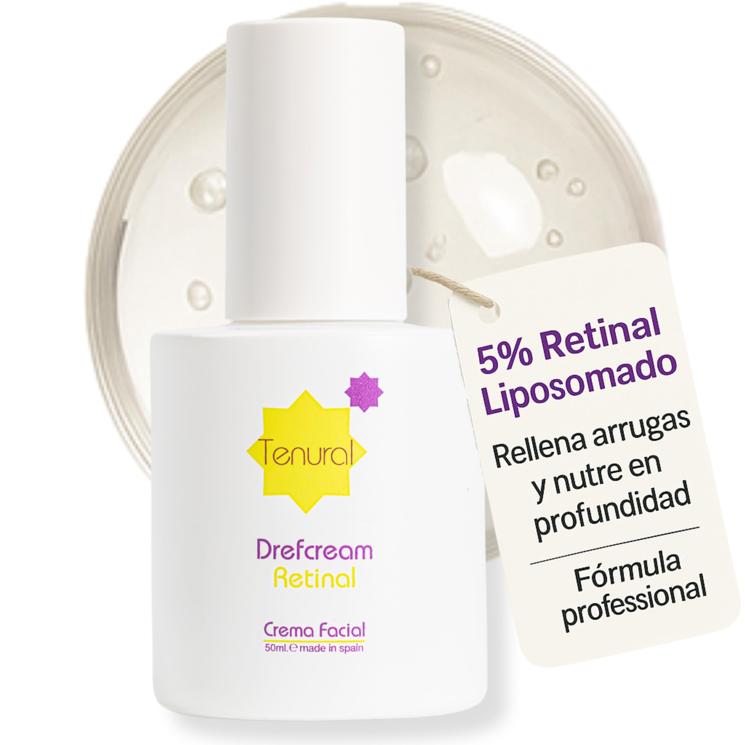 Tenural - Cleansing Milk with Retinal and Hyaluronic Acid Tenural Aqua Milk is an advanced cleansing milk with liposomal retinal and hyaluronic acid , which cleanses, hydrates, and rejuvenates the skin. It effectively removes impurities and makeup, reducing wrinkles and improving firmness, restoring radiance to mature skin. Ideal for skin accustomed to retinoids, it provides vitality and softness. Benefits: Removes impurities and makeup without drying. Reduces wrinkles and improves firmness thanks to liposomal retinal. Provides deep hydration with hyaluronic acid. Leaves skin soft and toned, with an immediate feeling of freshness. Ideal for mature skin and skin accustomed to using retinoids. Key Ingredients: Liposomal Retinal: Fights wrinkles and improves firmness. Hyaluronic Acid: Effective moisturizer that fills wrinkles and improves elasticity. Proteoglycans: Stimulates collagen, improving skin density. Hemi-Squalane: Natural moisturizer that maintains the skin barrier. Sophorolipid Eco S: Gentle cleanser for sensitive skin. Directions for Use: Apply to the face and neck with a cotton pad or your hands. Gently massage and rinse with lukewarm water. Use morning and evening to keep skin clean, hydrated, and rejuvenated. Warning: For external use only. Avoid contact with eyes and mucous membranes. Introduce gradually according to tolerance. If irritation occurs, reduce or discontinue use. Use sunscreen during the day. Presentation: 200 ml bottle, ideal for daily use. INDICATIONS Indicated for mature skin and skin experienced with retinoids, seeking to reduce wrinkles, improve firmness and hydration, and even out skin tone. Ideal for nighttime use with gradual introduction based on tolerance. INGREDIENTS Aqua, Propanediol, Hydrogenated Ethylhexyl Olivate, Ethyl Macadamiate, Glyceryl Stearate, Dicaprylyl Carbonate, Glycerin, Hydrogenated Olive Oil Unsaponifiables, Cetearyl Alcohol, Sodium Stearoyl Lactylate, Carrageenan, Squalane, Retinal, Bakuchiol, Butyrospermum Param. Kii (Shea) Butter, Sodium Hyaluronate, Phenethyl Alcohol, Aloe Barbadensis Leaf Juice Powder, Soluble Proteoglycan, DNA, Phosphatidylcholine, Tocopheryl Acetate, Xanthan Gum, Carbomer, Pentylene Glycol, Mannitol, Polyglyceryl-10 Laurate, Cetyl Alcohol, Caprylyl L-Glycol, Butylene Glycol, Trisodium Ethylenediamine Disuccinate, Tocopherol, Potassium Sorbate, Phenoxyethanol, Sodium Metabisulfite, Biotin, Malic Acid, Parfum. DIRECTIONS Suggested use: Apply a small amount to clean, dry skin on the face, neck, and décolleté. Gently massage until absorbed. If this is your first time using retinal, use 2 to 3 times per week and gradually increase the frequency. It can be applied at night and, if your skin tolerates it, also during the day with sunscreen. Use SPF daily to protect your skin and enhance results. SAFETY WARNING For external use only. Avoid contact with eyes, mucous membranes, or irritated skin. Gradually introduce into your routine as tolerated. If irritation occurs, reduce frequency of use or discontinue use. Use sunscreen during the day. Keep out of reach of children. See moreTexture and Feel: Lightweight, fast-absorbing formula with a delicate, allergen-free fragrance. Provides an immediate feeling of freshness and hydration without leaving a greasy residue. Suitable for all skin types. EXPERT TIP: Ideal for mature skin seeking an effective anti-aging treatment. Apply daily to a clean face, avoiding the eye area. Smooth in with gentle circular motions until fully absorbed to keep skin firm, nourished, and radiant. KEY INGREDIENTS: Liposomal Retinal, Bakuchiol, Hyaluronic Acid, Aloe Vera, DNA, and Proteoglycans. An advanced, natural formula that hydrates, firms, and effectively combats the visible signs of aging. BENEFITS: Deeply hydrates, visibly reduces wrinkles and expression lines, improves elasticity, and stimulates the natural production of collagen and elastin, providing firmness and radiance for rejuvenated skin. What is it? Intensive face cream formulated with retinal liposome for deep regeneration, enriched with hyaluronic acid, aloe vera, bakuchiol, DNA, and proteoglycans. Natural ingredients perfect for mature skin and retinoids.TENURAL - Crème visage Drefcream avec rétinoïdes et acide hyaluronique - Anti-âge, hydratante et raffermissante pour peaux matures et experte en rétinoïdes - 50 mlDESCRIPTION DU PRODUIT DESCRIPTION DU PRODUIT Tenural - Lait nettoyant avec rétinien et acide hyaluronique Tenural Aqua Milk est un lait nettoyant avancé avec rétinal liposomé et acide hyaluronique , qui nettoie, hydrate et rajeunit la peau. Élimine efficacement les impuretés et le maquillage, réduisant les rides et améliorant la fermeté, restaurant l'éclat de la peau mature. Idéal pour les peaux habituées aux rétinoïdes, apporte vitalité et douceur. Avantages : Élimine les impuretés et le maquillage sans dessécher. Réduit les rides et améliore la fermeté grâce au liposomé rétinien. Apporte une hydratation profonde avec de l'acide hyaluronique. Laisse la peau douce et tonique, avec une fraîcheur immédiate. Idéal pour les peaux matures et habituées à l'utilisation de rétinoïdes. Ingrédients clés : Rétinal liposomé : combat les rides et améliore la fermeté. Acide hyaluronique : hydratant efficace qui comble les rides et améliore l'élasticité. Protéoglycanes: Stimule le collagène, améliorant la densité de la peau. Hemi-squalane : hydratant naturel qui maintient la barrière intacte. Sophorolipid Eco S : nettoyant doux pour peaux sensibles. Mode d'emploi : Appliquer sur le visage et le cou avec un coton ou les mains. Masser doucement et rincer à l'eau tiède. Utilisez matin et soir pour garder la peau propre, hydratée et rajeunie. Avertissement : usage externe. Éviter tout contact avec les yeux et les muqueuses. Introduire progressivement selon la tolérance. En cas d'irritation, réduire l'utilisation ou l'arrêter. Utilisez un écran solaire pendant la journée. Prés