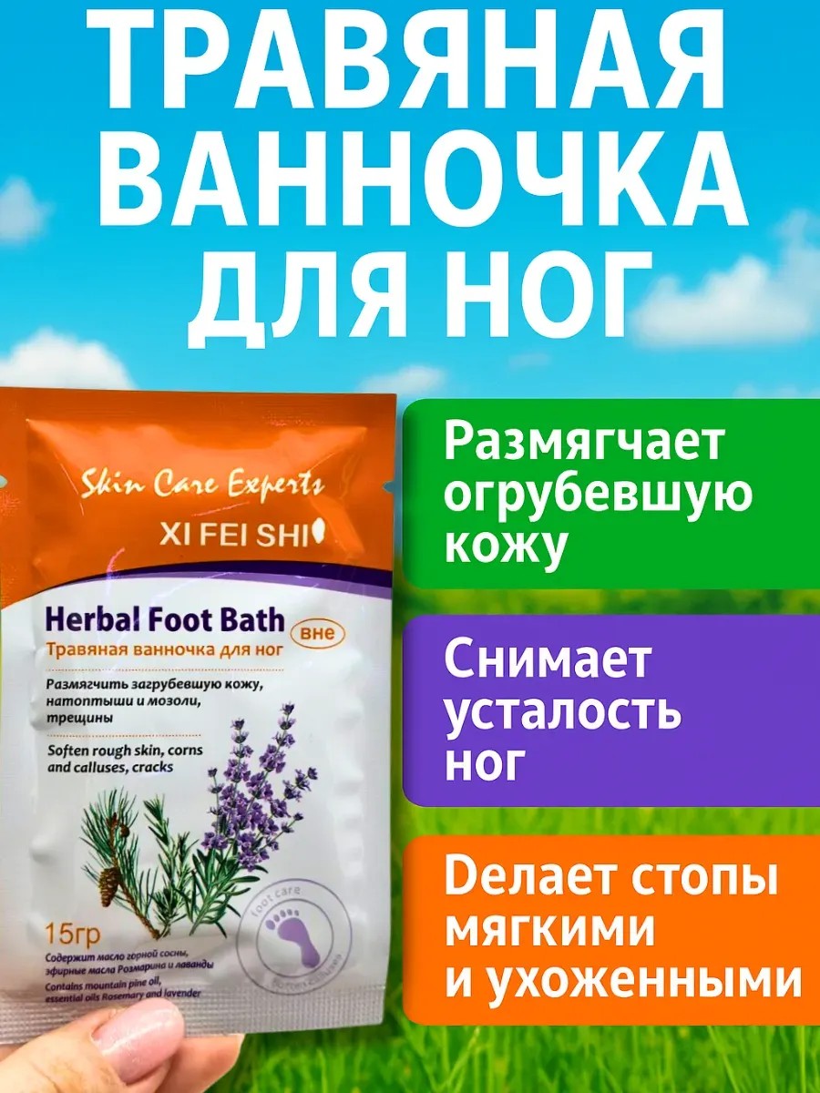 | Комплектация | Травяная ванночка для ног в упаковке 10шт |