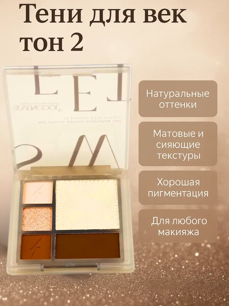 Палетка теней для век в тоне 2 — это универсальный набор из пяти оттенков, созданный для удобного и эффектного макияжа на каждый день и для особых случаев. Сочетание матовых и перламутровых текстур позволяет легко комбинировать цвета и создавать образы, подходящие для любого времени суток.