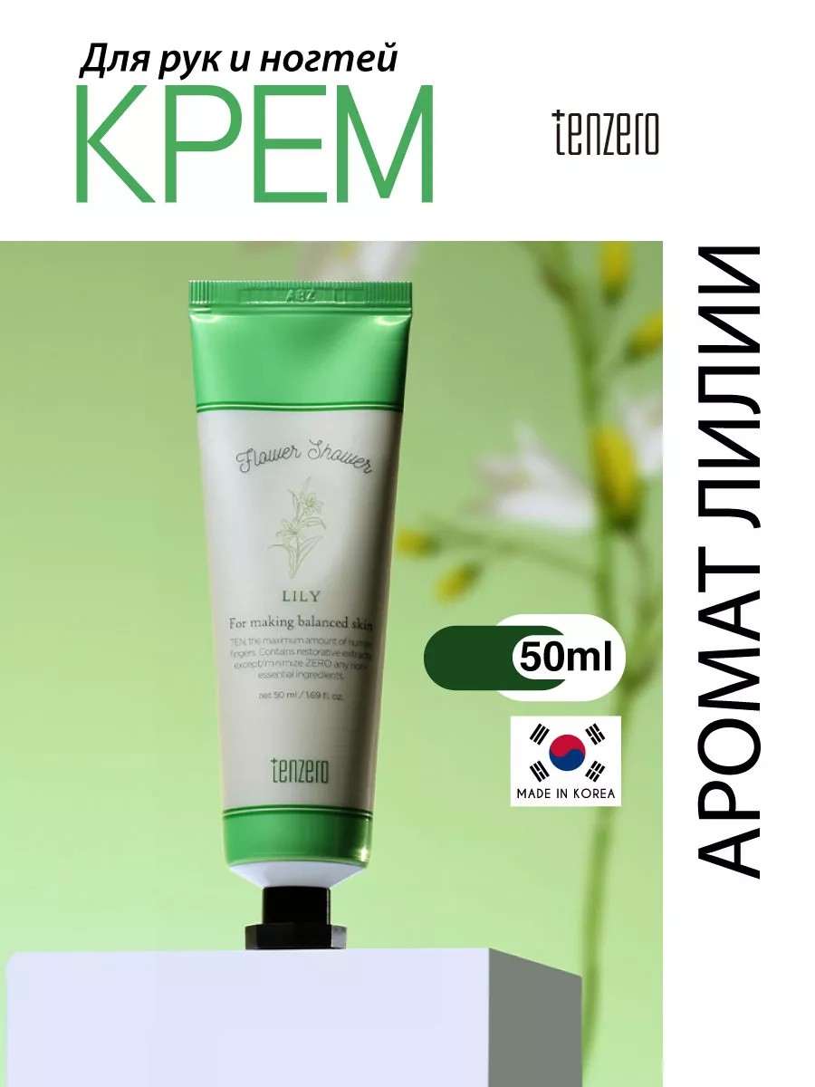 This lily-scented hand and nail cream allows you to enjoy a delicate and sophisticated aroma while simultaneously moisturizing and nourishing your hands and nails. This cream contains extracts of lily, lemon myrtle, freesia, sweet flower, and hyacinth, which help strengthen nails and stimulate their growth. They also help improve skin elasticity and reduce the appearance of wrinkles, leaving your hands looking youthful and well-groomed. The cream also contains shea butter and argan oil, which nourish and moisturize the skin, leaving it smooth and soft. Hyaluronic acid provides deep hydration and improves skin texture. The cream absorbs quickly without leaving a sticky feeling, providing long-lasting hydration to the skin of your hands. This cream is ideal for hand and nail care, helping to keep them healthy and well-groomed. Directions: Apply the cream to clean hands and nails, massaging until completely absorbed. An ideal gift for a woman, mother, friend, girlfriend, or loved one for a birthday, New Year's, March 8th, or Valentine's Day. Recommended for use in combination with the TENZERO series of Korean facial and body care cosmetics.