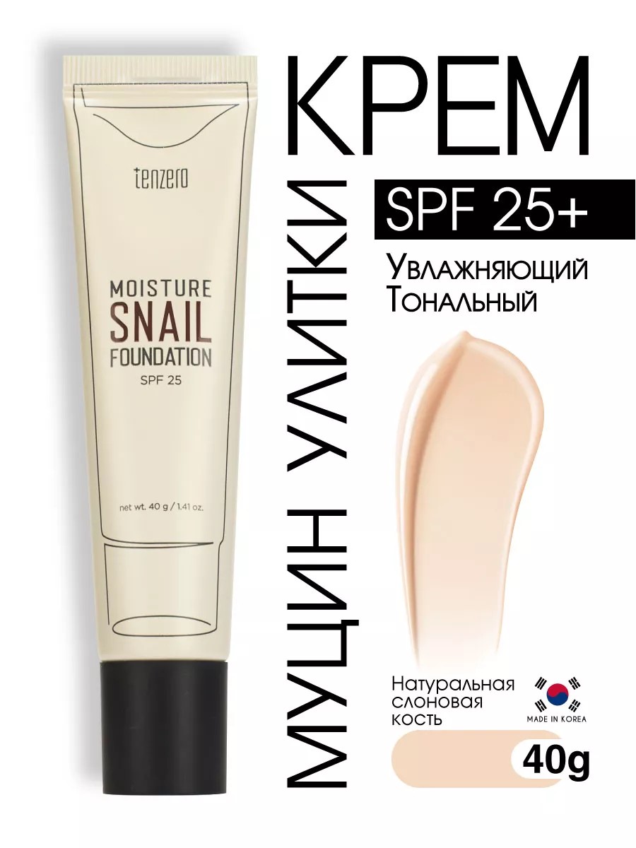 | Комплектация | Увлажняющий тональный крем с муцином улитки натуральная слоновая кость SPF 25+, 40г - 1шт |