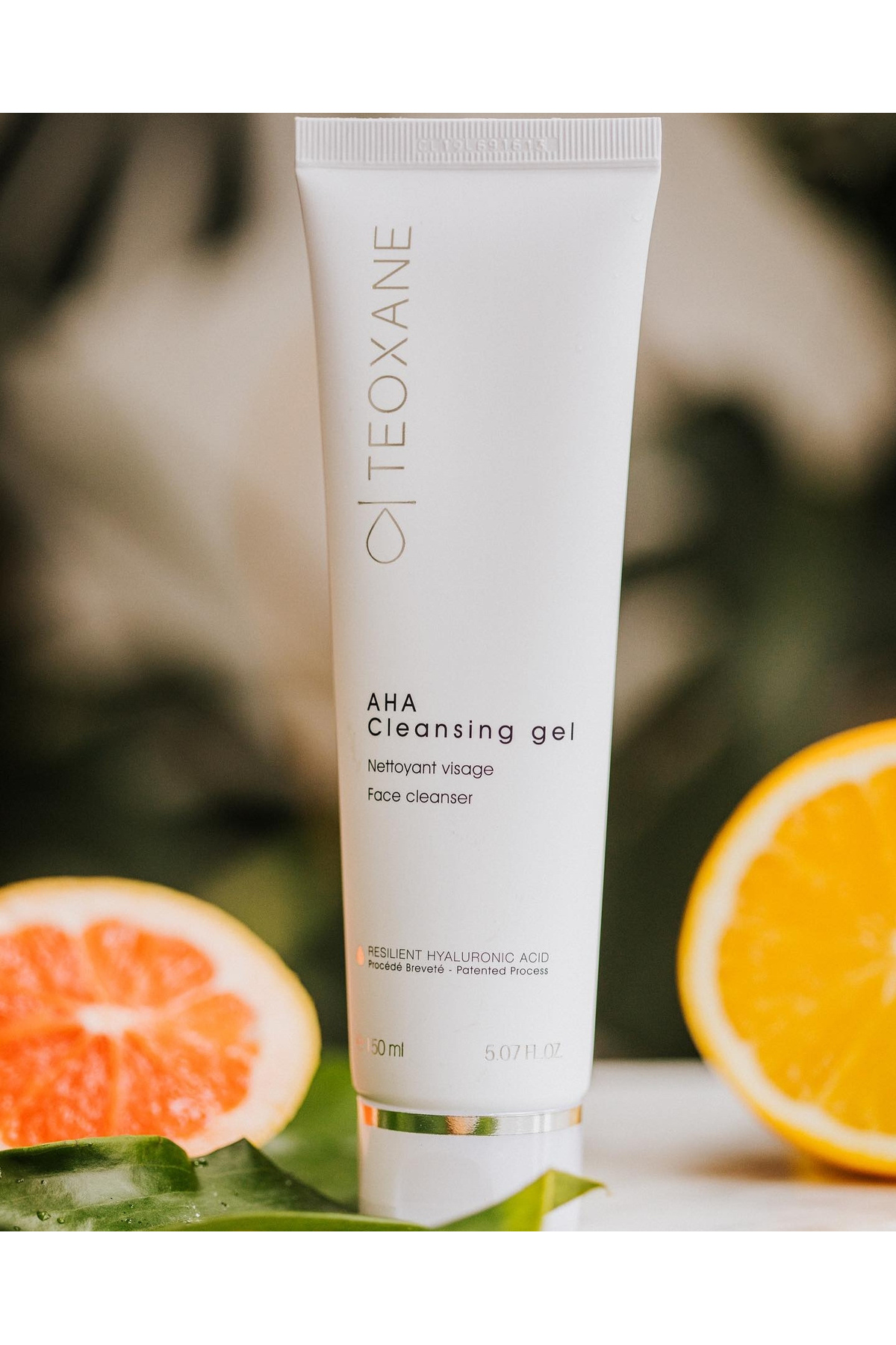 TEOXANE - AHA Cleansing Gel AHA Cleansing gel perfectly cleansed the skin and purified make-up and dead tissue in ¾ of all skin types as a result of its own evaluation of 20 volunteers carried out by an independent laboratory for 28 days. In the studies, pores became smaller in ¾ of the applied skins and a fresher appearance was achieved in ¾ of the skins. How to Use Apply once a day, in the morning or evening, to moisturized face and neck area. Foam and rinse thoroughly with warm water. Warnings Avoid contact with eyes. In case of contact with eyes, rinse thoroughly with water. Stinging and or redness may occur after application. If problems persist, discontinue use. It is recommended to use a moisturizing cream after facial cleansing.