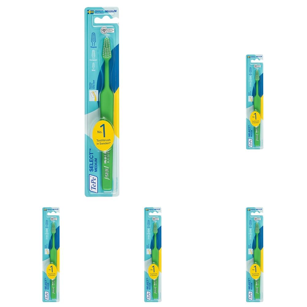 delivery: 1 x 1 select medium toothbrush from Tepe / Made in Sweden.Due to its flexible neck, this brush can be bent individually in any shape in order to achieve a better angle for tooth hygiene.This patented toothbrush is the hardness degree of medium - rounded bristles ensure gentle and pleasant brushing your teeth and a fresh mouthfeel.The ergonomic handle of this brush is particularly comfortable and user-friendly-for an optimal price-performance ratio.With the help of the narrowly running brush head, better accessibility in the area of ??the molars (molars) is guaranteed - for thorough cleaning.The following information applies to each unit per pack.