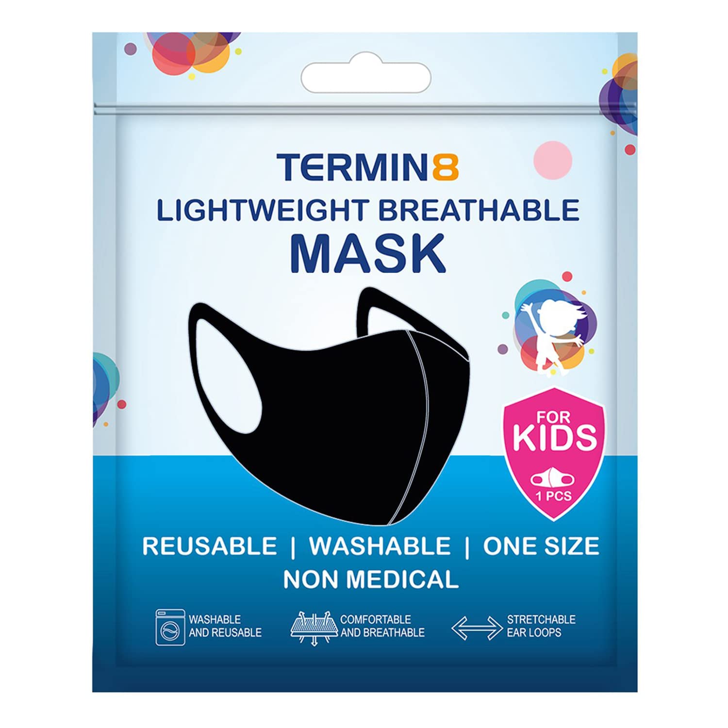 If you are looking for the perfect children's face mask to keep your child safe on the go, a light, breathable mask of terminals could be exactly the solution you need.Due to the light construction, they are much more sustainable than an average face mask You can fold them up small enough to fit into the smallest pockets and bags, so that you always have a mask on hand when you need it.Thanks to her breathing activity, your child remains cool and comfortable in situations in which it has to wear his mask for a long time.And if the inevitable happens and the mask is coated with mud, food or anything else, simply throw it into the washing machine with your next load (max. Temperature) and it will look ready to go.shipping directly from the United Kingdom.Made from a high-quality polyester-spandex mixture, which adapts softly on the skin and adapts to the contours of your face and ensures a good fit.Stretable ear loops for an automatic perfect fit for your face No need to adapt and pull on your mask all day.Completely washable and reusable, just put together with the next laundry in the washing machine.Super comfortable and breathable, made of light material for the best possible experience, especially if you have to wear your face mask for a long time.Wenn Sie auf der Suche nach der perfekten Kinder-Gesichtsmaske sind, um Ihr Kind unterwegs sicher zu halten, könnte eine leichte, atmungsaktive Maske von Termin8 genau die Lösung sein, die Sie brauchen. Aufgrund der leichten Konstruktion sind sie viel tragbarer als eine durchschnittliche Gesichtsmaske Sie können sie klein genug zusammenfalten, um selbst in die kleinsten Taschen und Taschen zu passen, so dass Sie immer eine Maske zur Hand haben, wenn Sie sie brauchen. Dank ihrer Atmungsaktivität bleibt Ihr Kind auch in Situationen, in denen es seine Maske für längere Zeit tragen muss, kühl und bequem. Und wenn das Unvermeidliche passiert und die Maske mit Schlamm, Lebensmitteln oder irgendetwas anderem beschichtet wird, werfen Sie sie einfach mit Ihrer nächsten Ladung (max. Temperatur 60 Grad) in die Waschmaschine und sie wird wie neu aussehen, bereit zu gehen.Versand direkt aus dem Vereinigten Königreich. Hergestellt aus einer hochwertigen Polyester-Spandex-Mischung, die sich weich auf der Haut anpasst und sich den Konturen Ihres Gesichts anpasst und für eine gute Passform sorgt. Dehnbare Ohrschlaufen für eine automatische perfekte Passform für Ihr Gesicht keine Notwendigkeit, ständig an Ihrer Maske den ganzen Tag über anzupassen und zu ziehen. Komplett waschbar und wiederverwendbar, einfach zusammen mit der nächsten Wäsche in die Waschmaschine stecken. Super bequem und atmungsaktiv, aus leichtem Material für die bestmögliche Erfahrung, vor allem, wenn Sie Ihre Gesichtsmaske für lange Zeit tragen müssen.Termin8 Gesichtsbedeckung für Kinder, Unisex, Schwarz, 1 Stück