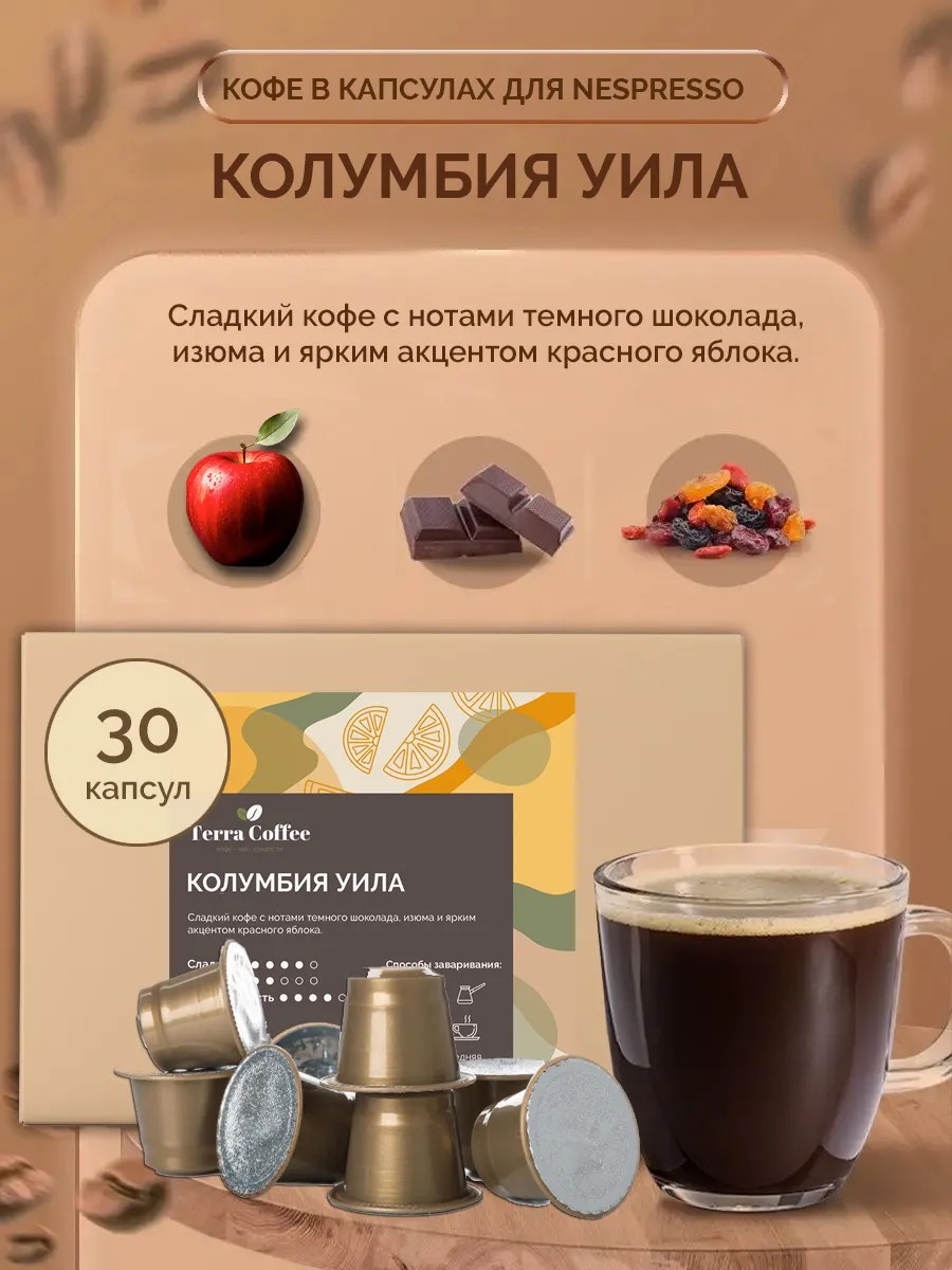 TERRA COFFEE Кофе в капсулах для Nespresso Колумбия Уила, 30 шт.