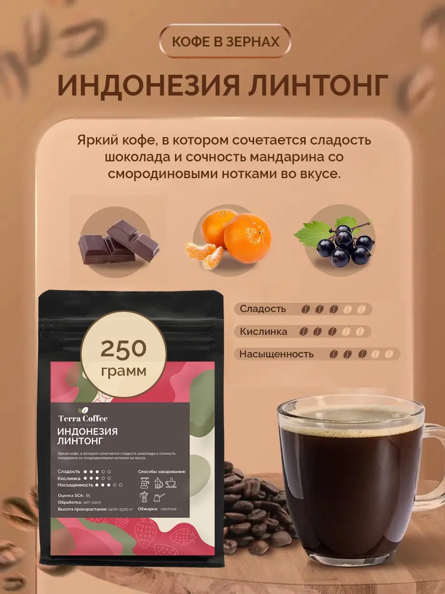 TERRA COFFEE Кофе в зернах 250 г Индонезия Линтонг