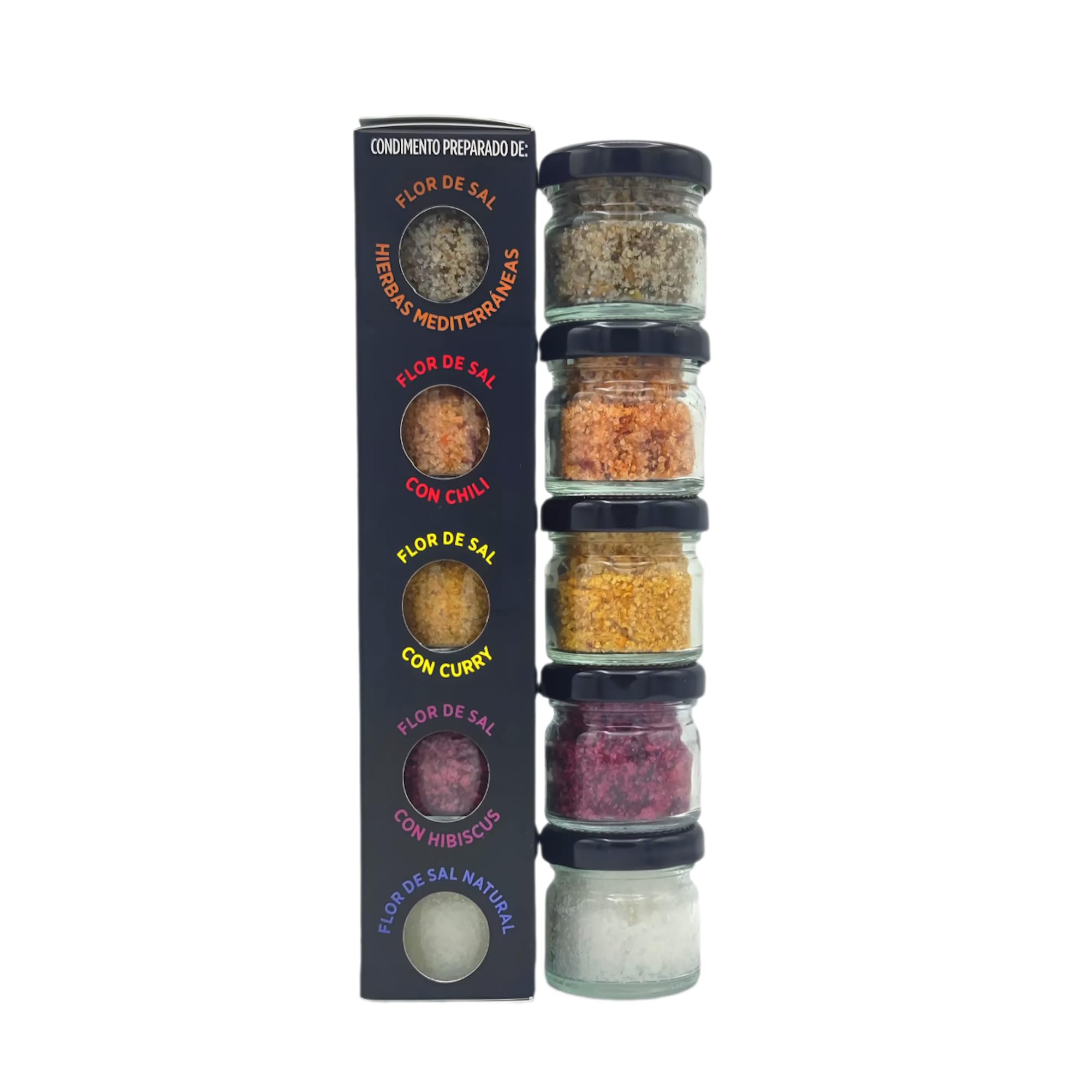 Terramar Mallorca Flor de Sal Gourmet Black Edition Pack of 5 Mallorcan Sea Salts (5 x 20g) This beautiful box from Terramar Mallorca contains the following salts: Flor de Sal con Hierbas Mediterráneas - Sea Salt with Mediterranean Herbs Ingredients: Flor de Sal sea salt 96 and 4 spices (oregano, thyme, marjoram, rosemary, basil) Flor de Sal con Chili - Sea Salt with Chili Pepper Ingredients: Sea salt 94 , cayenne pepper 3 , and chili pepper 3 Flor de Sal con Curry - Sea salt with curry Ingredients: Sea salt 95 , curry spices 5 (turmeric, fenugreek, corn flour, cloves, cumin, cayenne pepper) Flor de Sal con Hibiscus - Sea salt with hibiscus flowers Ingredients: Sea salt 97 and hibiscus flowers 3 Flor de Sal Natural - Natural sea salt Ingredients: 100 velvet sea salt This Majorcan sea salt is sun-dried and untreated in Majorca. Gourmets worldwide appreciate its distinctive flavor. Net weight: 100g Bottled in attractive, decorative, resealable 20g jars (disposable). Storage instructions: Store in a dry place, away from moisture. Manufacturer: Terramar Mallorca S.C. Es Pinar de Sa Coma, Poligon 29 Parcela 714, 35 Manacor Majorca Spain INSTRUCTIONS FOR USE Use the salts to season your dishes during cooking or at the table. Store at room temperature. MANUFACTURER'S DETAILS Terramar Mallorca S.C., Es Pinar De Sa Coma, Poligon 29 Parcela 714, 35, Manacor, ES See moreTERRAMAR MALLORCA Flor de Sal Black Edition - Lot de 5 sel de mer et épices de Majorque - Idée cadeau idéale (100 g)DESCRIPTION DU PRODUIT DESCRIPTION DU PRODUIT Terramar Majorque. Flor de Sal Gourmet Black Edition Lot de 5 sels de mer de Majorque 5 x 20 g Cette magnifique boîte de la marque Terramar Mallorca contient les sels suivants : Flor de Sal con Hierbas Mediterráneas - Sel de mer aux herbes méditerranéennes Ingrédients : sel de mer Flor de Sal 96 et 4 d'épices (origan, thym, marjolaine, romarin, basilic) Flor de Sal con Chili - Sel de mer avec piment. Ingrédients : sel de mer 94 , poivre de Cayenne 3 et piment 3 Flor de Sal con Curry - Sel de mer avec curry Ingrédients : sel de mer 95 , épices au curry 5 (curcuma, fenugrec, farine de maïs, clou de girofle, cumin, poivre de Cayenne) Flor de Sal con Hibiscus - Sel de mer avec fleurs d'hibiscus Ingrédients : sel de mer 97 et fleurs d'hibiscus 3 Flor de Sal Natural - Sel de mer naturel Ingrédients : sel de mer 100 de velours Ce sel de mer de Majorque est séché non traité au soleil de Majorque. Les gourmets du monde entier apprécient son goût particulier. Contenu (quantité nette) : 100 g. Mise en bouteille : dans de beaux bocaux décoratifs et refermables de 20 g (jetables) Conseils de conservation : conserver au sec et à l'abri de l'humidité. Fabricant : Terramar Mallorca S.C. Es Pinar de Sa Coma, Poligon 29 Parcela 714, 35 Manacor Majorque Espagne. MODE D'EMPLOI Utilisez les sels pour assaisonner vos plats pendant la cuisson ou à table. Conservez-les à température ambiante. COORDONNÉES DU FABRICANT Terramar Mallorca S.C., Es Pinar De Sa Coma, Poligon 29 Parcela 714, 35, Manacor, ES Voir plus