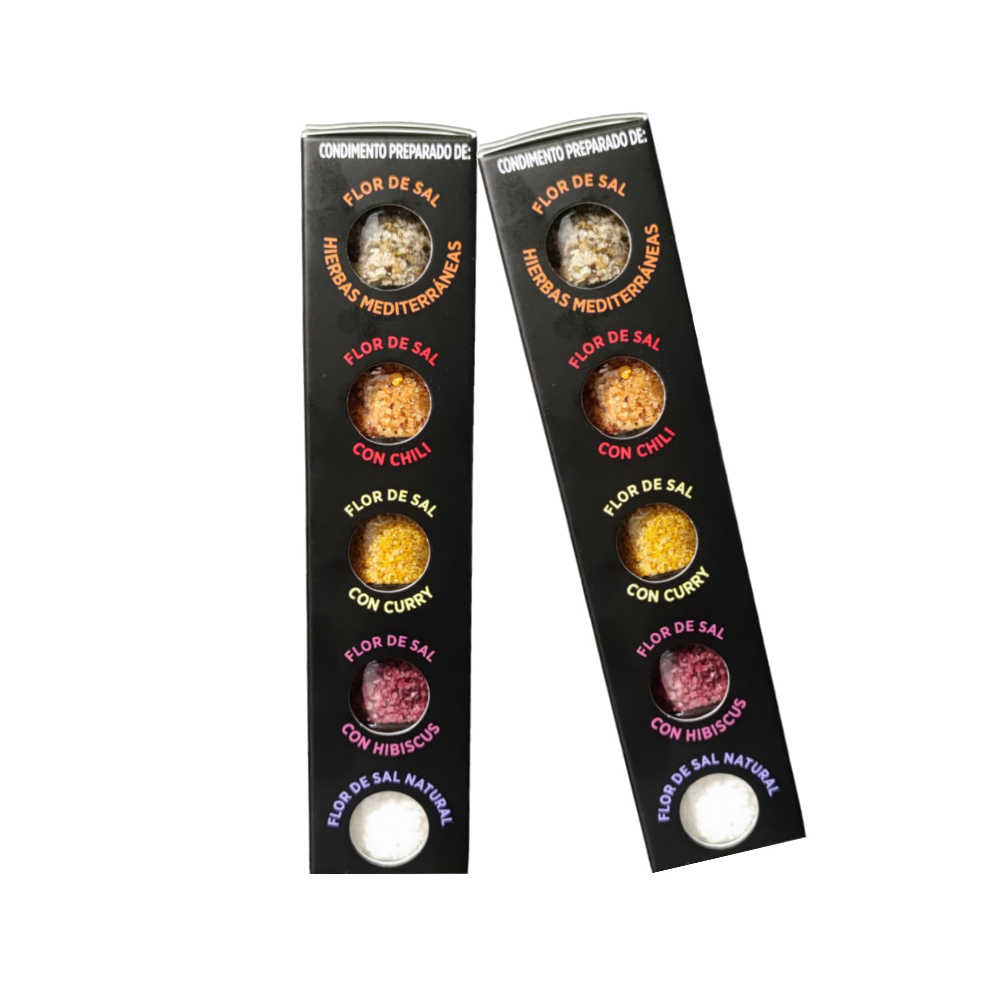 Terramar Mallorca Flor de Sal Black Edition 2 x 5 Gourmet Salts from Mallorca (10 x 20g) These wonderful tins from Terramar Mallorca contain the following salts: 2 x Flor de Sal con Hierbas Mediterráneas - Sea Salt with Mediterranean Herbs Ingredients: Flor de Sal (sea salt) 96 and 4 spices (oregano, thyme, marjoram, rosemary, basil) 2 x Flor de Sal con Chili - Sea Salt with Chili Pepper Ingredients: Flor de Sal sea salt 94 , cayenne pepper 3 , and chili pepper 3 2 x Flor de Sal with Curry - Curry Sea Salt Ingredients: Flor de Sal sea salt 95 , curry spice 5 (turmeric, fenugreek, cornmeal, cloves, cumin, cayenne pepper) 2 x Flor de Sal with Hibiscus - Sea Salt with Hibiscus Flowers Ingredients: Poil de Sal sea salt 97 and hibiscus flowers 3 2 x Flor de Sal Natural - Natural Sea Salt Ingredients: Poil de Sal 100 sea salt This Mallorcan sea salt is sun-dried and untreated in Mallorca. Gourmets worldwide appreciate its distinctive taste. Net contents: 200 g (2 x 100 g). Packaging: In attractive, decorative, resealable 20 g jars (disposable). Storage instructions: Store in a dry place, away from moisture. Manufacturer: Terramar Mallorca S.C. Es Pinar de Sa Coma, Poligon 29 Parcela 714, 35 Manacor Mallorca SpainTERRAMAR MALLORCA - Lot de 2 flacons de sel gourmand Flor de Sal Black Edition - Sel de mer et épices de Majorque - Idée cadeau idéale (2 x 100 g) 100.00 g (2er Pack)DESCRIPTION DU PRODUIT Terramar Majorque. Flor de Sal Lot de 2 x 5 sels gourmands Black Edition de Majorque (10 x 20 g) Ces merveilleuses boîtes de la marque Terramar Mallorca contiennent les sels suivants : 2 x Flor de Sal con Hierbas Mediterráneas - Sel de mer aux herbes méditerranéennes Ingrédients: Poil de Sal sel de mer 96 et 4 épices (origan, thym, marjolaine, romarin, basilic) 2 x Flor de Sal con Chili - Sel de mer au piment. Ingrédients : Poil de Sal sel de mer 94 , poivre de Cayenne 3 et piment 3 2 x Flor de Sal con Curry - Sel de mer au curry Ingrédients: Flor de Sal sel de mer 95 , épice au curry 5 (curcuma, fenugrec, semoule de maïs, clou de girofle, cumin, poivre de Cayenne) 2 x Flor de Sal con Hibiscus - Sel de mer avec fleurs d'hibiscus Ingrédients: Poil de Sal sel de mer 97 et fleurs d'hibiscus 3 2 x Flor de Sal Natural - Sel de mer naturel Ingrédients : Poil de Sal 100 sel de mer Ce sel de mer de Majorque est séché non traité au soleil de Majorque. Les gourmets du monde entier apprécient son goût particulier Contenu (quantité nette) : 200 g (2 x 100 g). Mise en bouteille : dans de beaux bocaux décoratifs et refermables de 20 g (jetables). Consignes de stockage : conserver au sec et à l'abri de l'humidité. Fabricant : Terramar Mallorca S.C. Es Pinar de Sa Coma, Poligon 29 Parcela 714, 35 Manacor Majorque Espagne