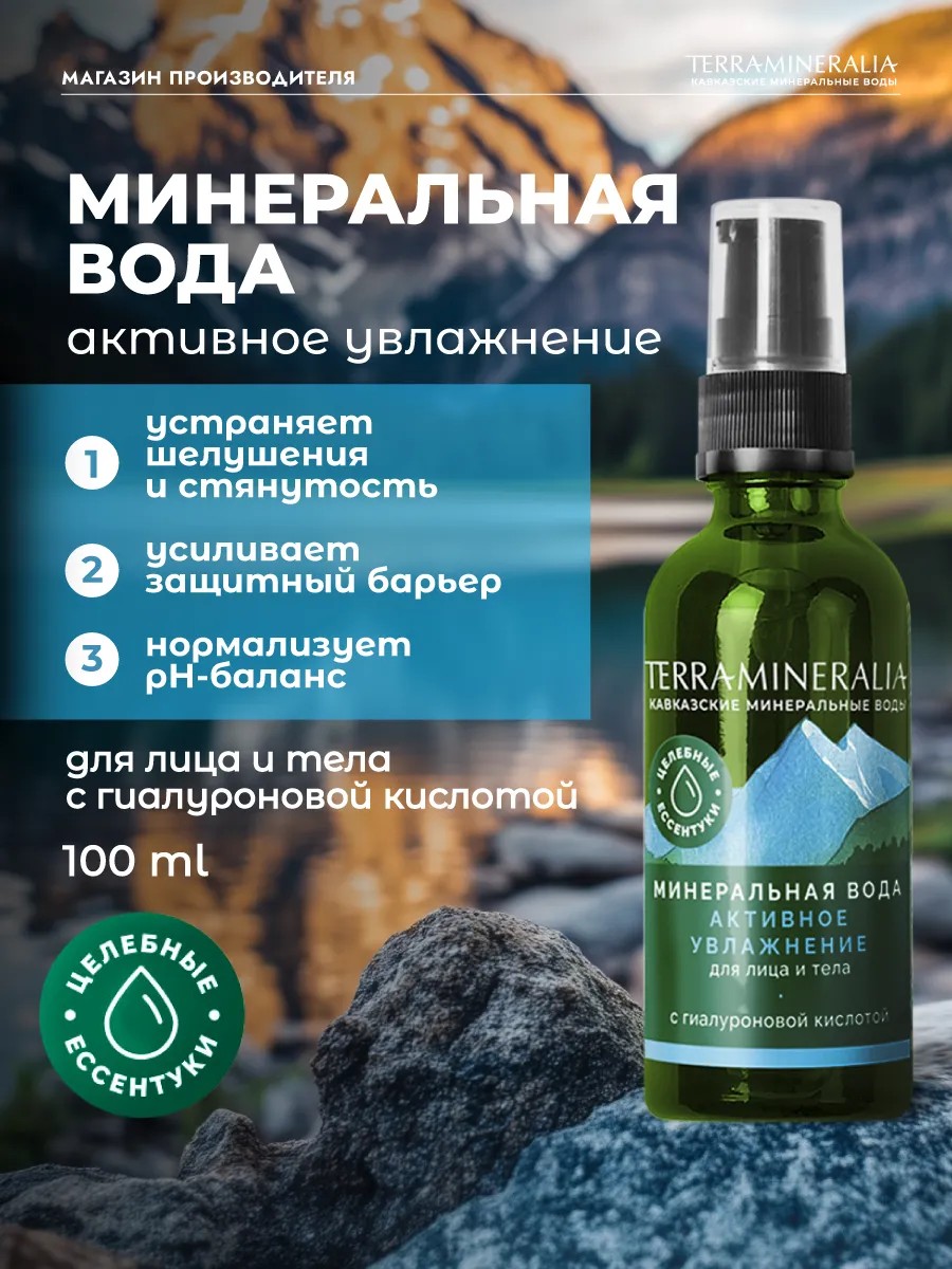 Минеральная вода с гиалурованной кислотой для лица и тела 100 мл - натуральное средство, активно увлажняет, устраняет шелушения и стянутость, усиливает защитный барьер кожи, нормализует рН баланс.