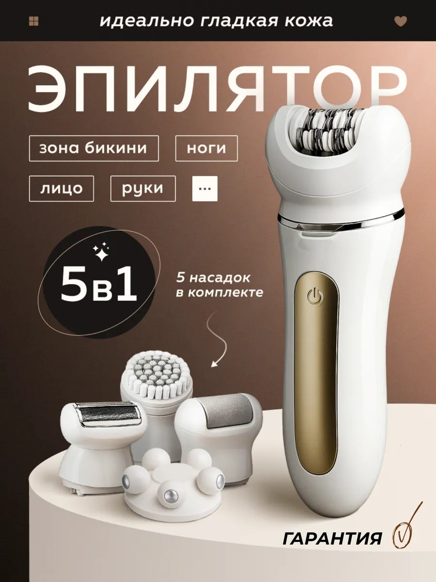 Беспроводной женский депилятор – идеальное решение для безупречной гладкости кожи в области бикини, на ногах, на руках, лице и подмышках. Этот электрический аппарат для депиляции (5 в 1) гарантирует высококачественный результат с полным удалением волосков для любых участков тела.
