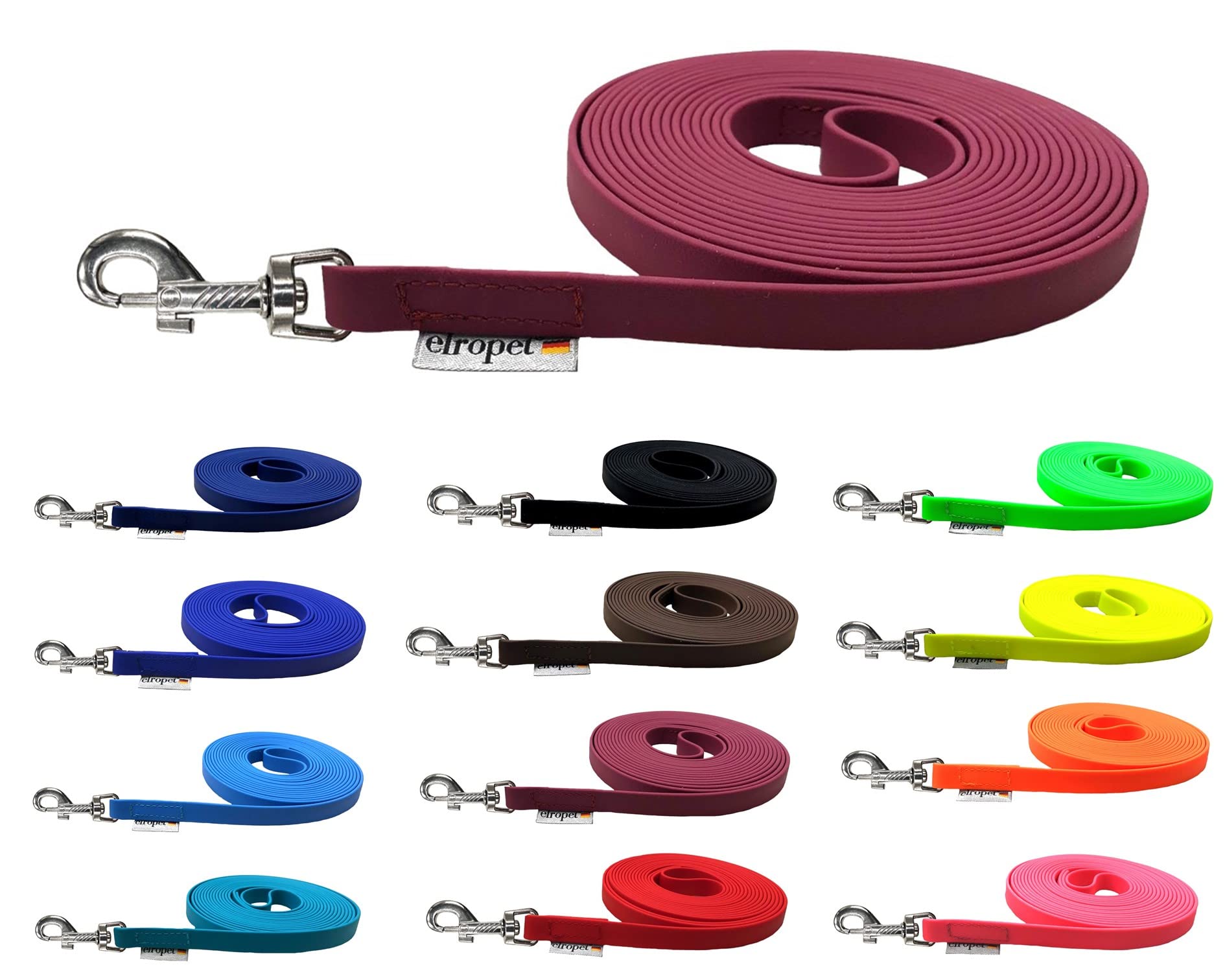 We also have other bothane linen in the program once 9mm for small dogs and 13mm.This leash is 16mm wide and therefore ideal for medium and large dogs.Important: We only use original biothane!This is particularly tear -resistant and UV constant, which means that the colors do not fade.In addition, this biothane leash can lie in water and dirt for days without the leash absorbing water.Another advantage is that the leash does not absorb any smells.This leash is really one of our most popular lines.A quality product of the Elropet brand.We process this high -quality material in our own production facility in Germany.In order to be able to offer you optimal tear resistance, we sew the biothane leash with a special seam seam.
