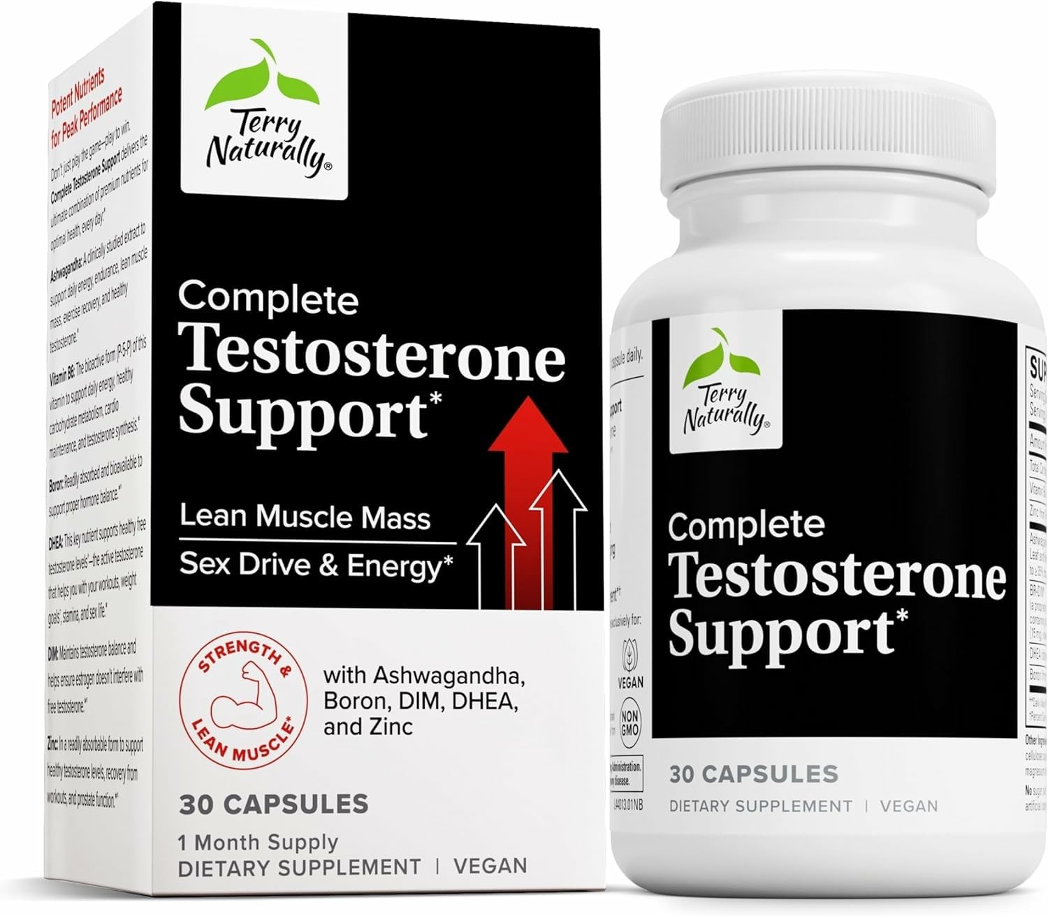 Terry Naturally Complete Testosterone Support - Energy Supplement for Exercise Recovery - Male Hormonal Balance Support - Vegan - 30 Capsules (30 Servings)