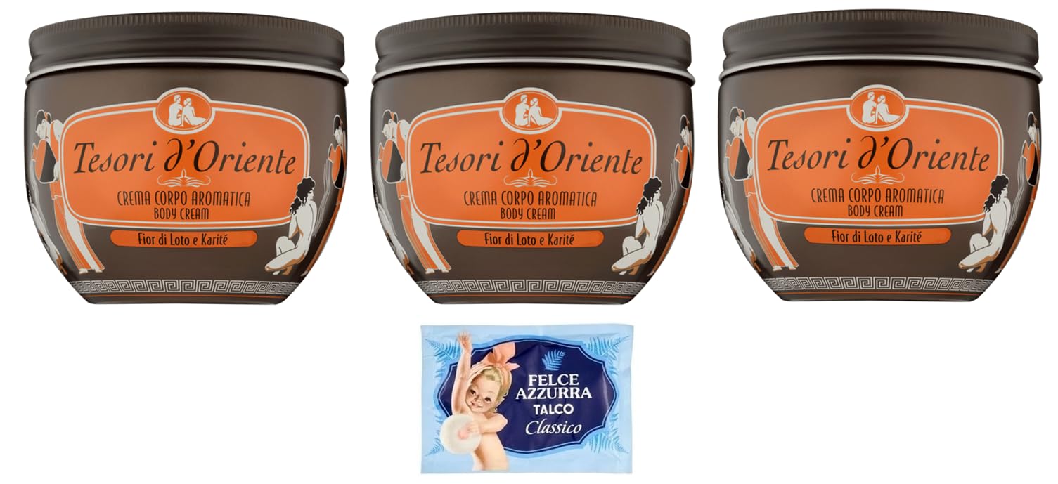 Tesori d'Oriente Crema Corpo Fior di Loto e Shea Body Cream with Lotus Flower and Shea 300 ml + 1 x Felce Azzurra Talc Bag 100 g