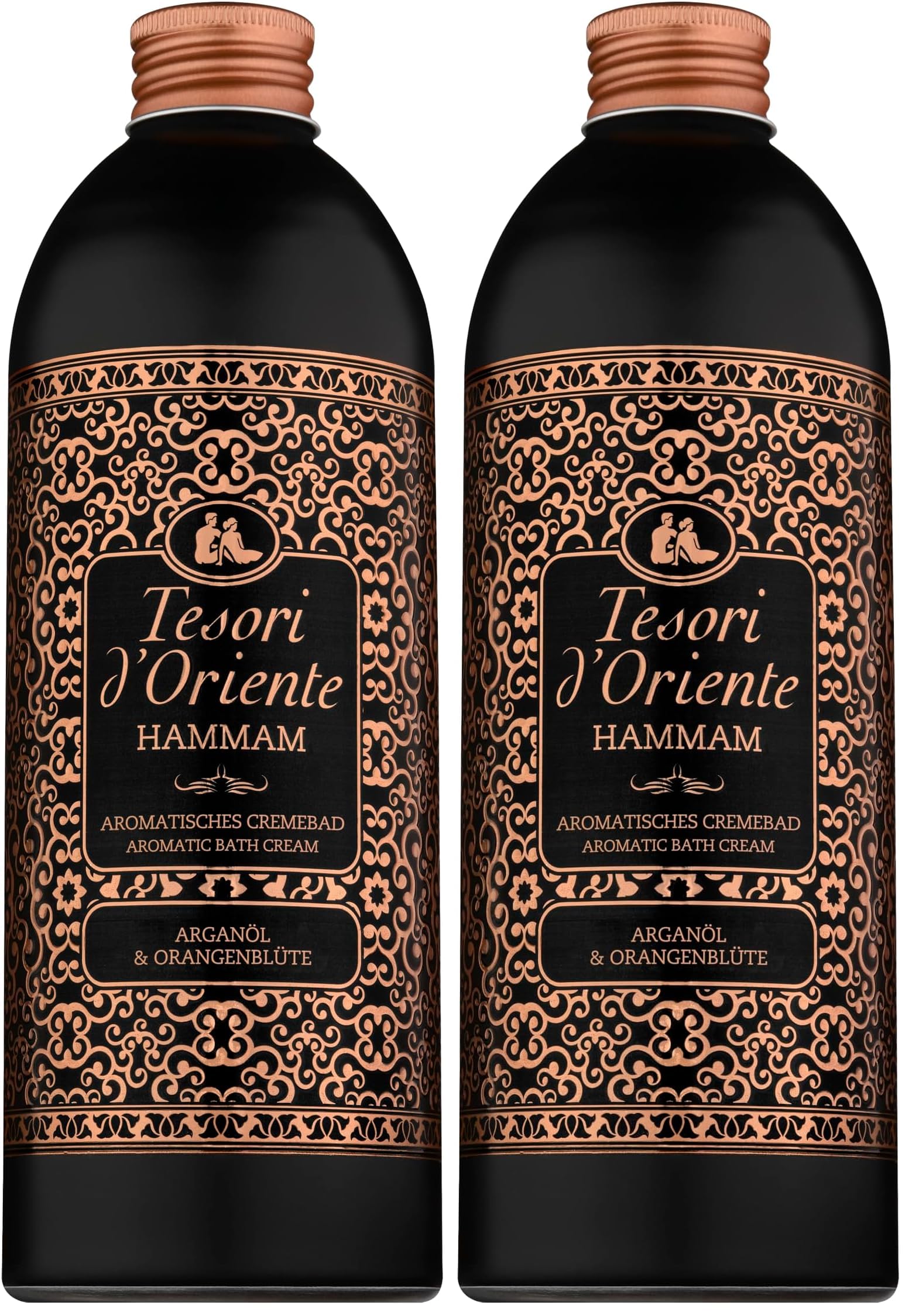 Tesori d'Oriente Cremebad Hammam - Bain de bain aromatique à l'huile d'argan et à la fleur d'oranger - 500 ml - Soin du corps pour la baignoire, rituel pour le corps et les sens (Lot de 2)