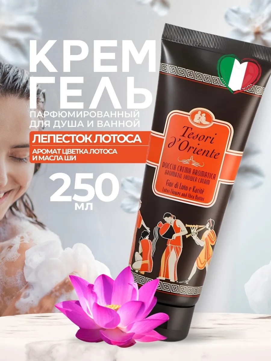 Интенсивно ароматный и интригующий, парфюм ласкает чувства своими мягкими, теплыми нотами, обеспечивая ощущение приятного благополучия. Все это собрано в парфюмернном геле для душа Tesori d’Oriente Lotus flower. Уникальная разработка итальянских парфюмеров создает универсальный парфюмированный гель для душа с ярким ароматом, обладающим хорошей стойкостью до 3 часов и уходовыми свойствами лосьона для тела. Гель предназначен как для нее, так и для него. Универсальность продукта делает его идеальным подарком для любой аудитории: будь то девушки, мамы или мужчины, каждый найдет в нем что-то особенное. Крем гель для душа соблазняет нотами парфюма и создает ощущение свежести после каждого применения. Гель для душа является отличным выбором для мужчин и женщин, кто ищет невероятно соблазнительные и приятные ароматы. Линейка Japanese Rituals предложит вам уникальным опытом настоящей красоты и оздоровительной процедуры у себя дома. Благодаря увлажняющему эффекту кожа становится более мягкой и бархатистой на ощупь. Парфюмированный крем гель для душа — это настоящее спасение в стрессовые будни, приносящая уютную атмосферу уюта прямо в вашу ванную/ Кроме того, он идеально подходит для использования как уникальный подарок близкому человеку на любое событие или даже без повода — чтобы выразить свою заботу и внимание к деталям.Парфюмированный гель создан специально для тех, кто ценит баланс традиций с инновациями. Невероятные натуральные ароматы согревают легкостью изысканностью с намеком на роскошь классического парфюма. Увлажняющий эффект защищает кожу от негативного воздействия окружающей среды и способствует поддержанию её естественного увлажнения. Идеальное сочетание ароматов поднимает настроение с первых минут нанесения средства во время принятия душа или купания в ванной.