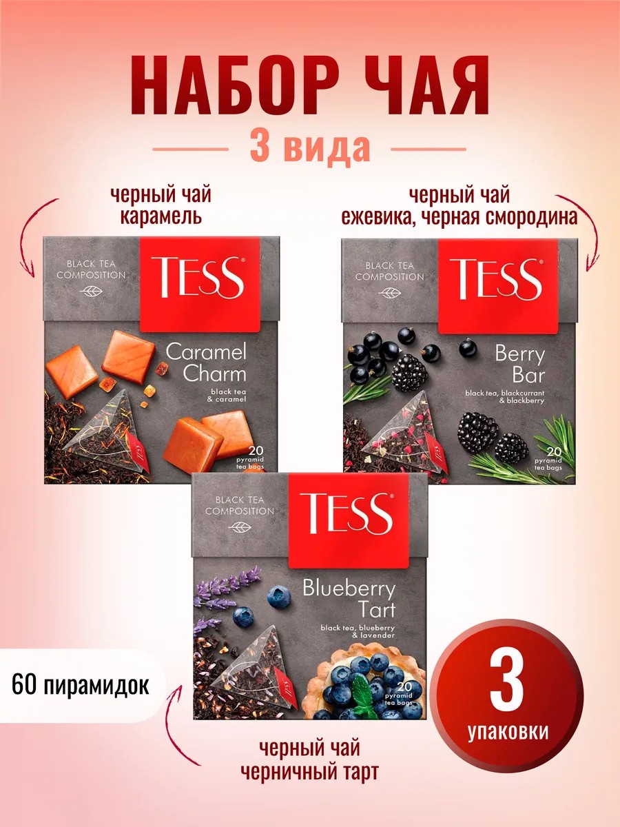 Tess Набор чая Caramel Charm,Blueberry Tart, Berry Bar
