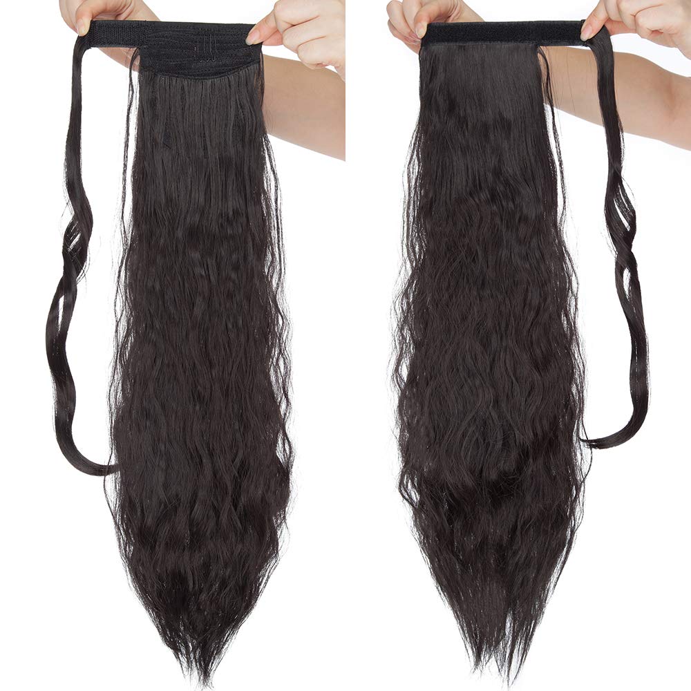 TESS Pferdeschwanz Extensions Naturschwarz Ponytail Hair Corn Wave Zopf Haarteil Clip in Extensions wie Echthaar günstig mit Klettverbindung 20"(50cm)-90g