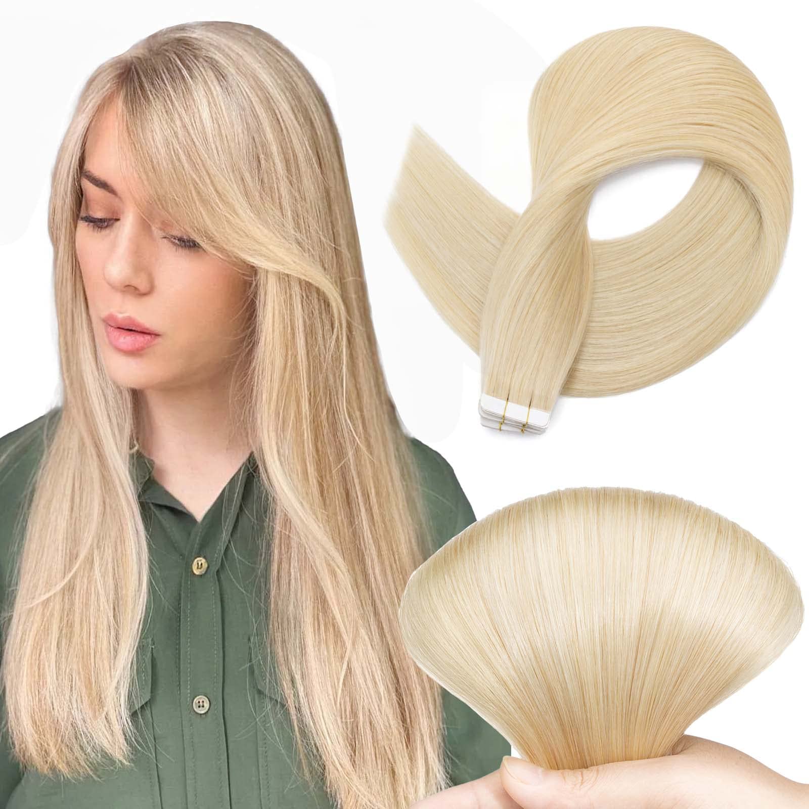 TESS Tape Extensions Echthaar 613 Blond 30cm Klebeband Haarverlängerung 20er Pack Glatt Remy Tape in Hair Extensions für Haarverdichtung (20 Tressen 613(Hellblond)) 30cm Lichtblond