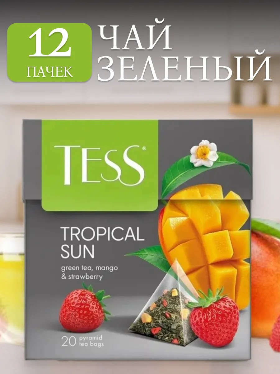 Чай зелёный Tess Tropical Sun (Тропикал Сан) в пирамидках - это настоящая находка для любителей экзотических вкусов и ароматов. Каждая пирамидка весом 1,8 г погружает вас в атмосферу солнечных тропиков, благодаря тщательно подобранным компонентам высокого качества. В упаковке содержится 20 пирамидок, что обеспечивает удобство и простоту приготовления напитка в любое время дня.