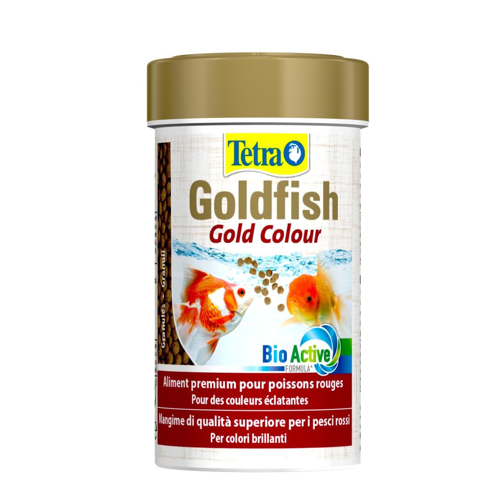 Tetra Goldfish Gold Colour 100 ml INGREDIENTS Limited ingredients DIRECTIONS FOR USE Store in a cool, dry place, close tightly after use Directions for use:Feed several times a day in small portions. Very fine, round granules for a complete diet. Containing more carotene, intensifies the natural colors and resistance of fish. Contains fiber that promotes intestinal transit and facilitates digestion. Does not cloud the water. Complete food in granules for vibrant colors - Suitable for all goldfish and coldwater fish. Tetra Goldfish Gold Colour 100 ml INGRÉDIENTS Ingrédients limités MODE D'EMPLOI Stocker dans un endroit frais et sec, bien refermer après utilisation Conseils d'utilisation :A distribuer plusieurs fois par jour en petites rations. Granulés très fins et ronds pour une alimentation complète Contenant plus de carotène, intensifie les couleurs naturelles et la résistance des poissons Contient des fibres qui favorisent le transit intestinal et facilitent la digestion Ne trouble pas l'eau. Aliment complet en granulés pour des couleurs éclatantes - Convient à tous les poissons rouges et d'eau froide.