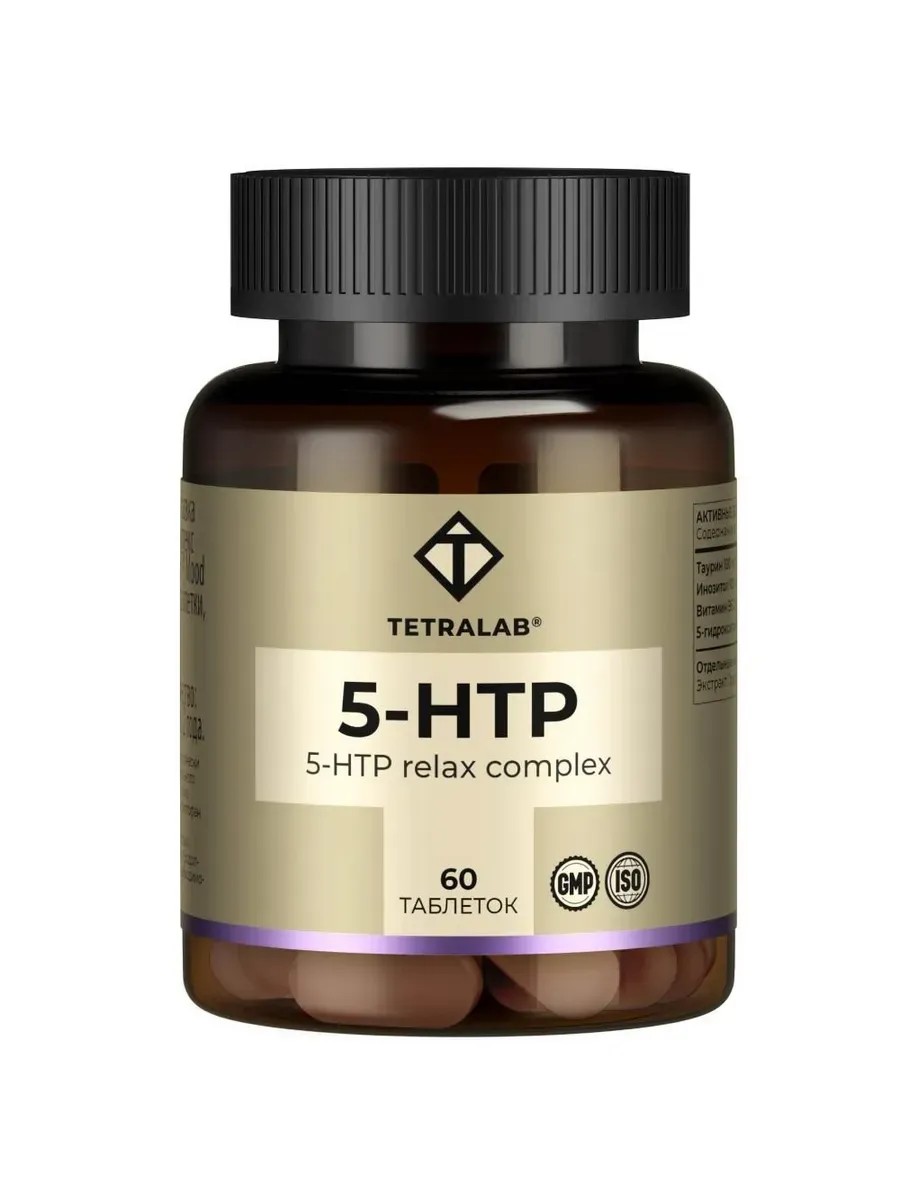 TETRALAB 5-HTP РЕЛАКС-КОМПЛЕКС (5-HTP Mood & Relaxation (Complex)) - Биологически активная добавка к пище - сон, настроениеСодержание в 1 таблетке:• Таурин 100 мг (±10 %)• Инозитол 100 мг (±10 %)• Витамин В6 2 мг (±20 %)• Глицин 100 мг (±10 %)• 5-гидрокситриптофан 200 мг (±10 %)Комплекс оказывает благоприятное воздействие на нервную систему, обеспечивая равномерное распределение глюкозы между ее клетками.5-гидрокситриптофан (5-HTP) участвует в синтезе мелатонина («гормона сна») и серотонина («гормона счастья»), способствует улучшению самочувствия, устранению чувства тревоги.Пиридоксин (витамин В6) играет важную роль в выработке серотонина и норэпинефрина, которые помогают контролировать такие факторы, как настроение, концентрация внимания и общий тонус организма.Глицин активирует процессы защитного торможения в центральной нервной системе, уменьшает психоэмоциональное напряжение, повышает умственную работоспособность.Преимущества1 таблетка в деньВысокая дозировка 5-НТР