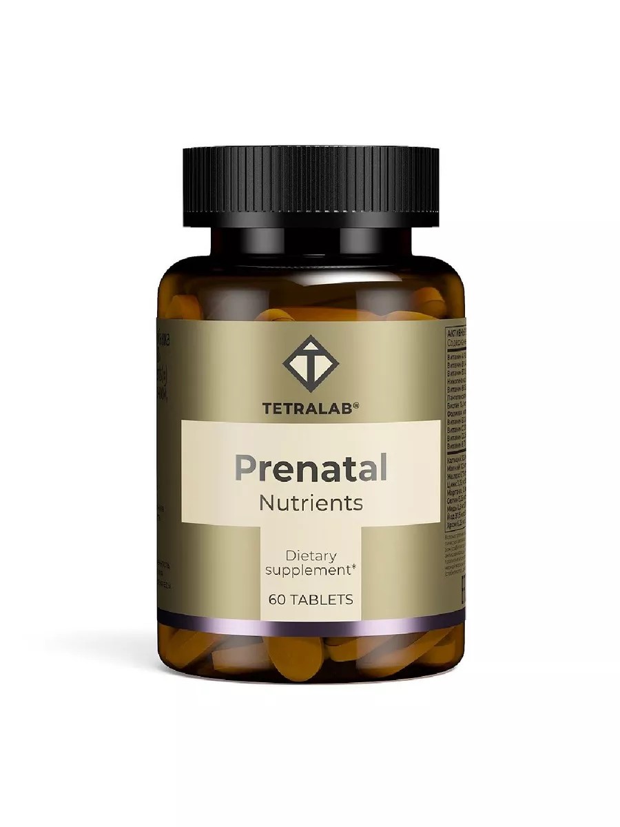 "TETRALAB Prenatal (Nutrients)". The components of the Prenatal complex help maintain the health and beauty of women, prevent developmental disorders in newborns, and promote normal mental and physical development in infants. B vitamins are responsible for the proper development of the fetal nervous system, have a positive effect on intestinal and liver function, support the immune system, and promote the regeneration of skin and other body tissues. Before use, it is recommended to consult a doctor. RECOMMENDED USE: Women planning a pregnancy, during pregnancy and breastfeeding, take 2 tablets daily with meals.