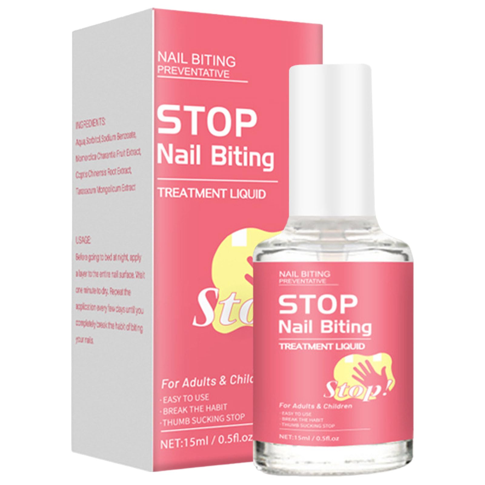 Prevent your child from biting their nails with our nail polish. Our formula helps promote healthy nail growth while providing a bite-resistant layer throughout the day. Generally, 1 to 2 coats are enough to protect your child's nails. Say goodbye to nail biting and hello to beautiful, healthy nails. Specification: Product Name: Nail Biting Prevention Capacity: 15 ml Package List: Nail Biting Prevention x1 Note: 1. Due to different display and lighting effects, the actual color of the product may be slightly different from the color shown in the picture. Thank you! 2. Due to manual measurement, a measurement deviation of 1-3 cm is allowed. SAFETY WARNING Not applicableConvenient to carry: Protect your nails from nail-biting damage easily apply layer by layer with the included brush achieve optimal results with just 1 to 2 coats. Night Repair Boosts Protection: Repair and nourish your nails while protecting them throughout the day with this multi-purpose nail-biting prevention solution. Enjoy all-day anti-bite benefits and avoid thumb sucking. Essential nourishment: Experience healthy nails with our anti-bite nail polish. Infused with almond oil, grapeseed oil, lemon oil, and more, it nourishes and repairs nails for a stunning and attractive finish. Safe and without side effects: Thanks to the power of extracts, our nail-biting prevention product is a safe solution that stops this habit without side effects. Made from all-natural ingredients, say hello to healthier, stronger nails and goodbye to bad habits. Improve nail growth: Help yourself or your loved ones stop biting their nails with our bitter nail polish. Enhance nail growth and health, and prevent damage caused by nail biting.Arrêtez de sucer le pouce, prévention des rongements d'ongles,Vernis à ongles Vernis anti-morsure d'ongles - Prévention de la succion des doigts, arrêter de se ronger les ongles pour les, les adDESCRIPTION DU PRODUIT DESCRIPTION DU PRODUIT Empêchez votre enfant de se ronger les ongles avec notre vernis à ongles pour . Notre formule aide à favoriser une croissance saine des ongles tout en fournissant une couche anti-morsure pendant la journée. Généralement, 1 à 2 couches suffisent pour protéger les ongles de votre enfant. Dites adieu à la succion des ongles et bonjour aux ongles beaux et sains. Spécification: Nom du produit: prévention des rongements d'ongles Capacité : 15 ml Liste de colisage: Prévention des rongements d'ongles x1 Note: 1. En raison des différents effets d'affichage et d'éclairage, la couleur réelle du produit peut être légèrement différente de la couleur montrée sur l'image. Merci! 2. En raison de la mesure manuelle, un écart de mesure de 1 à 3 cm est autorisé. AVERTISSEMENT DE SÉCURITÉ N'est pas applicableTransport pratique : protégez vos ongles des dommages causés par le rongement des ongles appliquez facilement couche par couche avec le pinceau fourni obtenez des résultats optimaux avec seulement 1 à 2 couches. Night Repair Booste la Protection : Réparez et nourrissez vos ongles tout en les protégeant pendant la journée avec cette solution multi-usages de prévention des rongements d'ongles. Profitez des avantages anti-morsure toute la journée et évitez la succion du pouce. Alimentation indispensable : faites l'expérience d'ongles sains avec notre vernis à ongles anti-morsure. Infusé d'huile d'amande, d'huile de pépins de raisin, d'huile de citron et plus encore, il nourrit et répare les ongles pour une finition époustouflante et attrayante. Sûr et sans effets secondaires : grâce à la puissance des extraits de , notre produit de prévention des rongements d'ongles est une solution sûre qui met fin à cette habitude sans effets secondaires. Fabriqué à partir d'ingrédients entièrement naturels, dites bonjour à des ongles plus sains et plus forts et adieu aux mauvaises habitudes. Amélioration de la croissance des ongles : aidez vos ou vous-même à arrêter de vous ronger les ongles avec notre vernis amer. Améliorer la croissance et la santé des ongles et prévenir les dommages causés par le rongement des ongles.