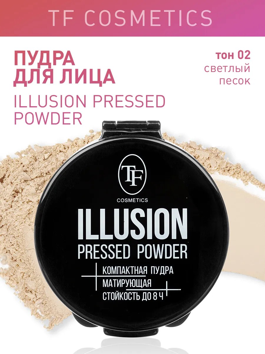 TRIUMPH ILLUSION pressed powder, shade 02 - light sand. This next-generation compact powder with a light consistency conceals wrinkles and blurs discolorations. Creates the illusion of smooth, clean, flawless skin. Conceals imperfections without drying out, perfectly mattifying. Use alone or over foundation or moisturizer to create the effect of fresh, rested skin. Two application methods: dry and wet.
