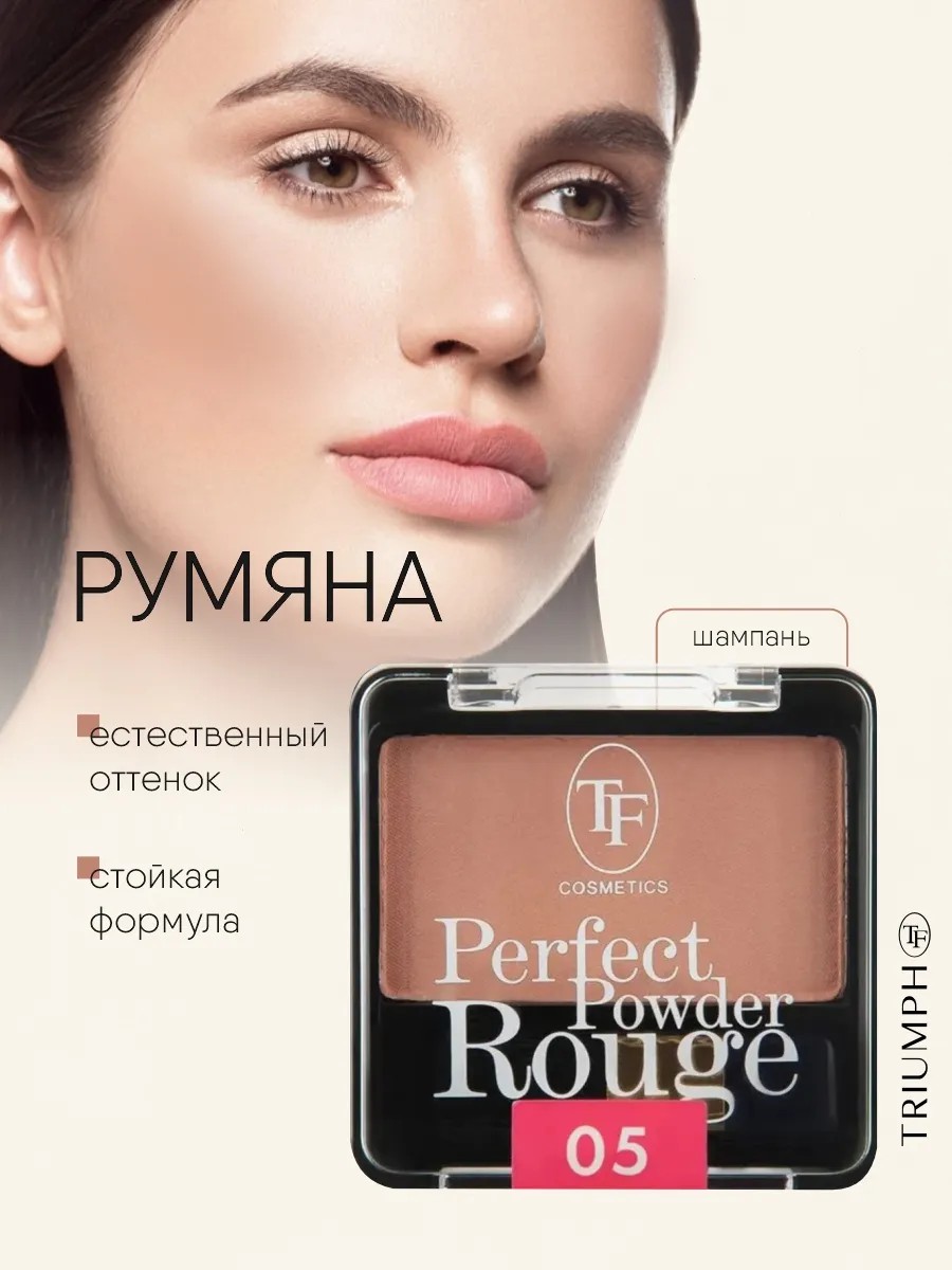 TF cosmetics Румяна Perfect Powder Rouge, тон 05 Шампань. Компактные пудровые румяна для лица натуральных оттенков — это идеальное средство для создания свежего и естественного макияжа. Они сочетают в себе легкость нанесения, стойкость и способность освежать лицо, делая его более выразительным и привлекательным.