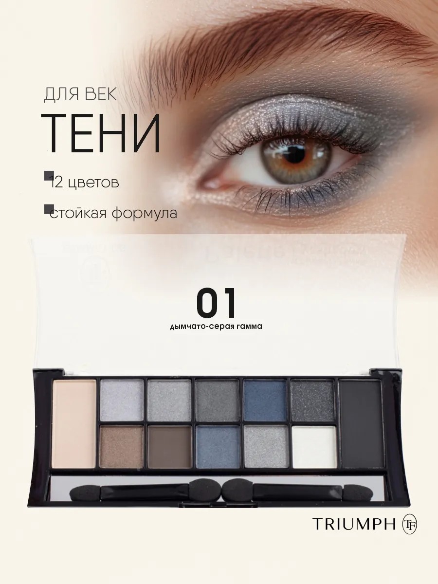 TF Cosmetics Color Palette Eyeshadow Pearl & Matte. This palette features a wide range of expertly selected colors, featuring cool and warm, matte and pearlescent shades suitable for various skin tones, any season, and any makeup effect and purpose. 12 harmoniously coordinated shades make your eyes look more attractive, visually enlarging them and emphasizing the depth and expressiveness of your gaze. Ideal for everyday makeup, this palette allows for endless combinations, inspiring new eye makeup experiments. Individual shades can be used to create trendy makeup looks: Smoky Eyes, Ombre, Nude, and Brown Nude. The shadows blend perfectly, visually smooth the eyelids, resist creasing, and last all day. Accurate color rendition allows you to accurately select the desired tone and saturation of the shadows; the shades in your eye makeup will match the colors in the palette. The eyeshadows blend beautifully and evenly, coating the eyelids with a thin, even layer and imparting a rich hue. These shades look stunning in any situation and complement any skin type and eye color (brown, gray, blue, or green). The velvety texture applies and blends easily, maintaining rich color and staying power all day. The eyeshadows feel completely seamless on the eyelids and don't irritate them throughout the day. For easy application, use a flat synthetic or natural brush of a comfortable size. For a more lasting effect, use a primer or foundation under the eyeshadow or any creamy texture. Suitable for daytime and evening makeup, for everyday and professional makeup. The compact packaging fits even in a small cosmetic bag. Ophthalmologically tested. Directions: Apply to eyelids with a brush or applicator and blend. Volume/weight: 18 g.