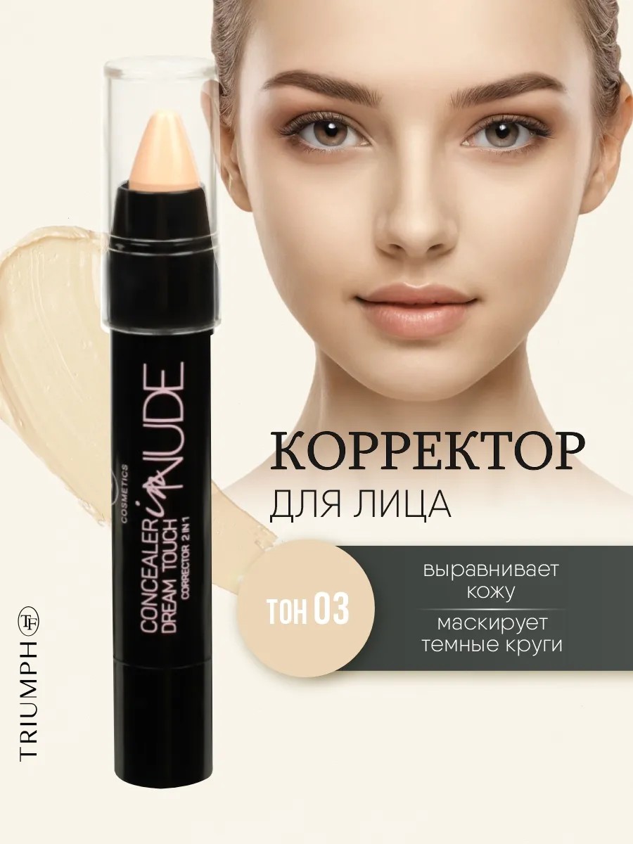 TF cosmetics Корректор для лица 2в1 Concealer in Nude, тон 03 Porcelain/Фарфоровый. Корректор в формате механического карандаша представляет собой высокоэффективное средство для точечной коррекции различных несовершенств кожи, особенно в деликатной зоне вокруг глаз. Благодаря продуманной текстуре средней плотности, продукт эффективно справляется с маскировкой широкого спектра эстетических проблем: от темных кругов и синяков под глазами до локальных покраснений, прыщиков и пигментных пятен.