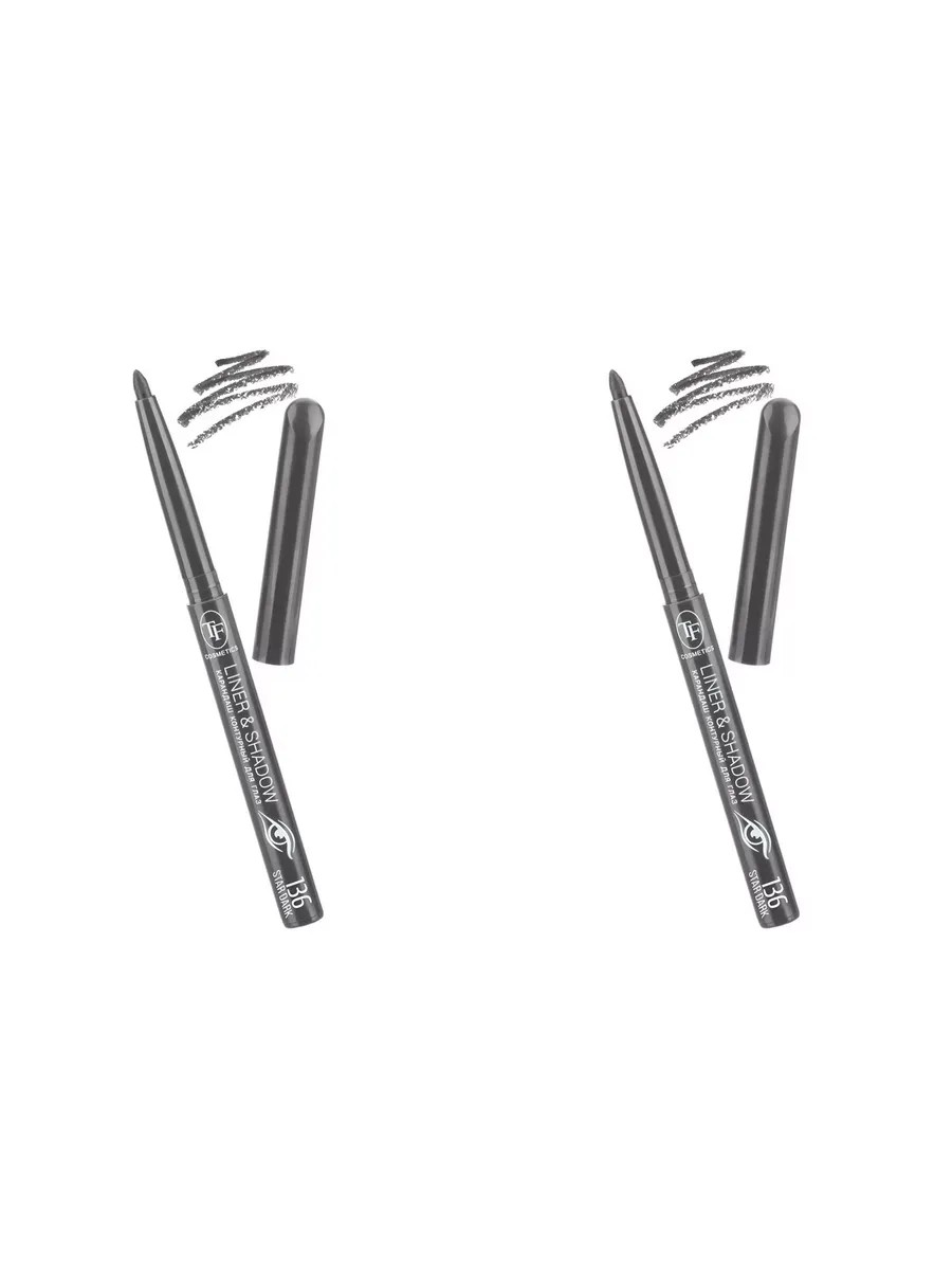 TF cosmetics Карандаш для глаз автоматический Liner&Shadow тон 136 Темная звезда, 2 штуки в комплекте. Автоматический контурный карандаш легко наносится на контур глаз и на внутреннее веко, делает взгляд выразительным и ярким, ухаживает за нежной кожей вокруг глаз. Гелевая текстура с касторовым маслом позволяет грифелю мягко скользить, обеспечивая комфортное нанесение, отличную растушевку и яркий результат. Формула с пчелиным воском придает свойствам карандаша эластичность, создавая ровные и четкие линии, сохраняет насыщенность цвета, обеспечивает быструю фиксацию и стойкость. Выкручивающийся механизм движется в двух направлениях, обеспечивая удобное использование.