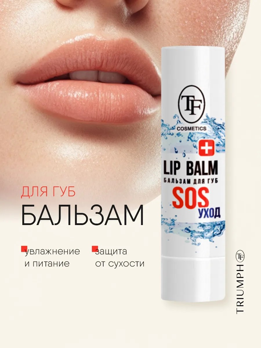 TF cosmetics Бальзам для губ SOS уход. Новая формула бальзама не только разглаживает кожу губ, но и обеспечивает равномерное покрытие, которое тает на губах, обеспечивая всесторонний уход.