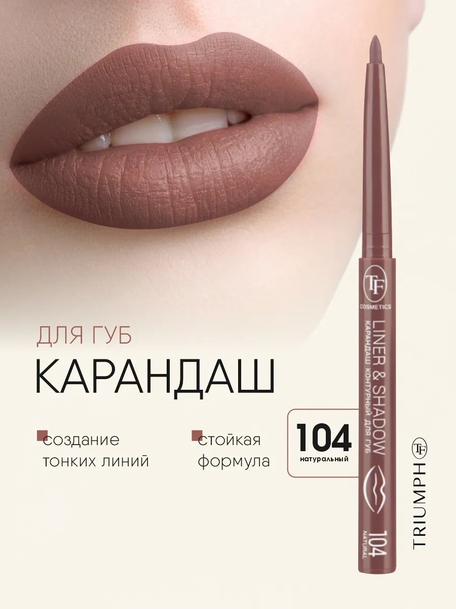 TF cosmetics Карандаш контурный для губ автоматический Liner&Shadow, тон 104 natural/натуральный. Автоматический лайнер для губ обладает насыщенным цветом и нежной текстурой, обеспечивая точное нанесение, идеальный контур и уход за кожей губ, идеально подходит для использования в качестве основы под помаду или блеск.