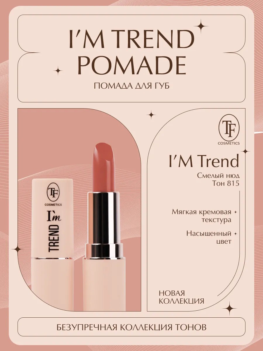 Губная помада TF Cosmetics линейки I'm TREND CZ22-815 Смелый нюд станет идеальным дополнением к косметичке каждой девушки и женщины, стремящейся подчеркнуть свою красоту. Эта стойкая глянцевая помада сочетает в себе чистый насыщенный цвет и мягкую кремовую текстуру. Она равномерно распределяется по губам, обеспечивая комфортное нанесение и благородный глянцевый финиш.